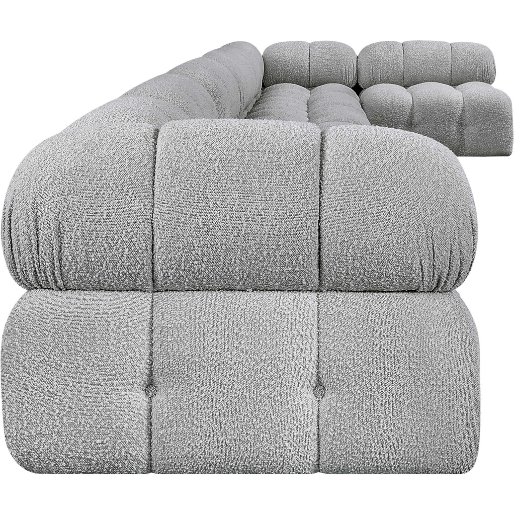 Meridian Ames 136" Grey Boucle Fabric Upholstered 4 pc Modular Sofa