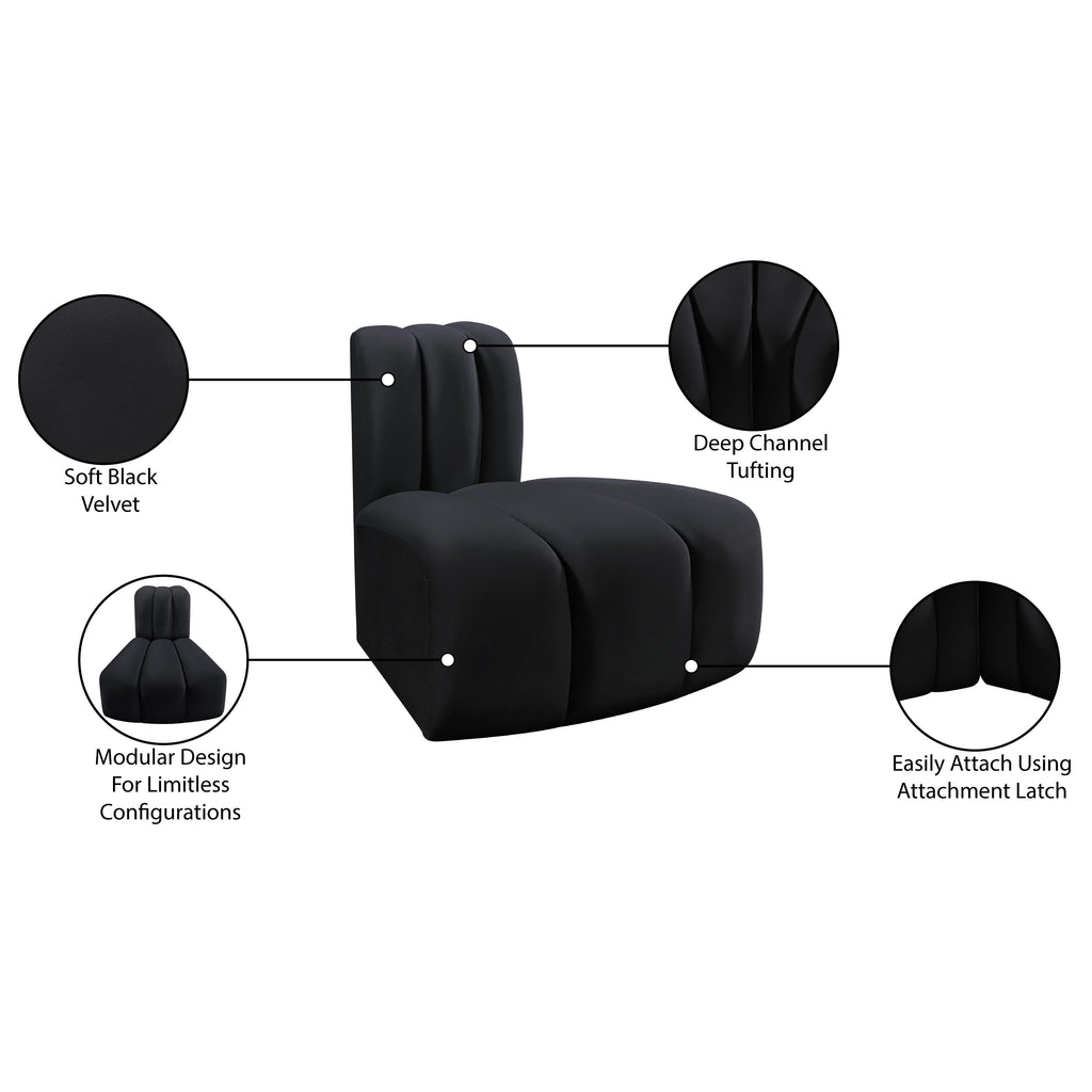 Meridian Arc Black Velvet Upholstered Modular Straight Chair