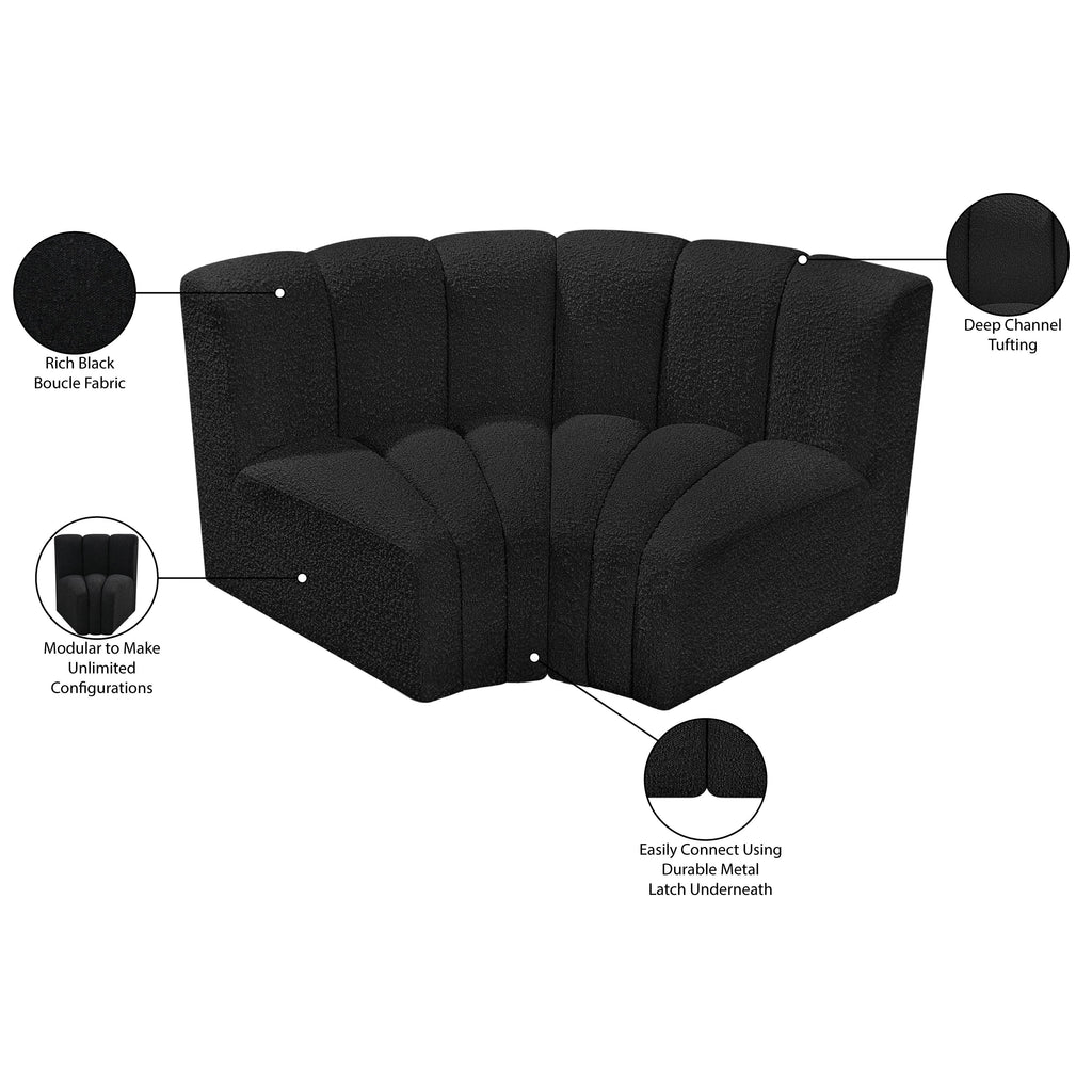 Meridian Arc Black Boucle Fabric Upholstered Modular Curved Corner Chair