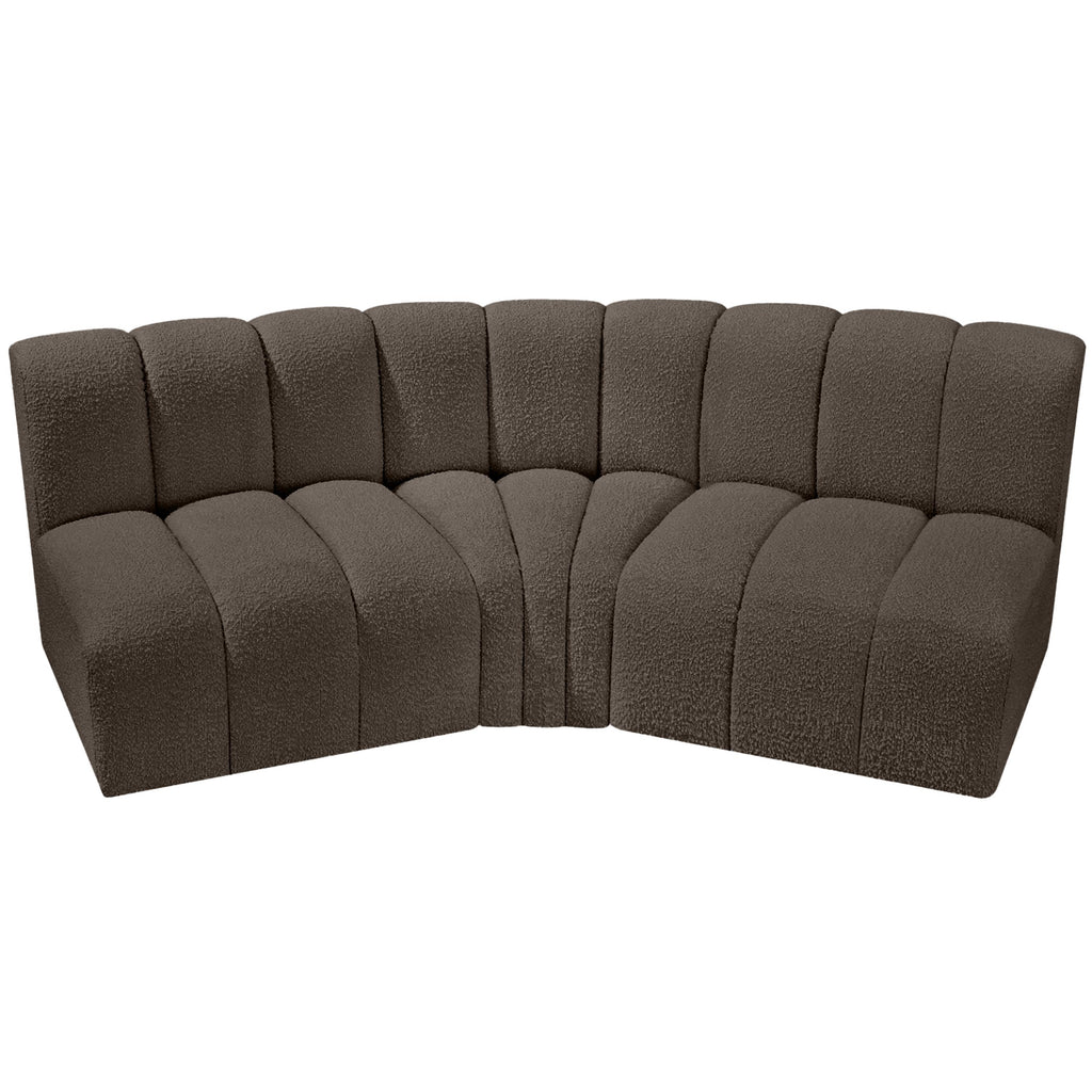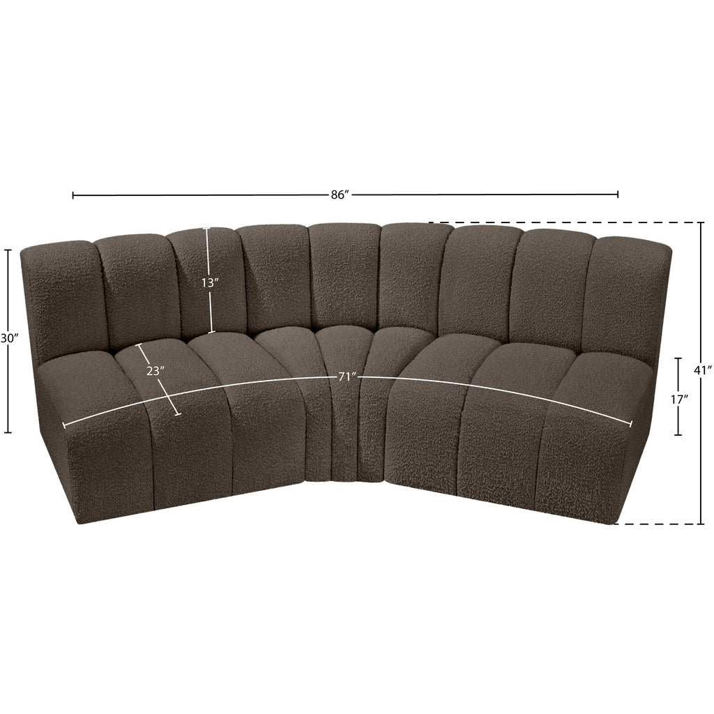 Meridian Arc 84" Brown Boucle Fabric Upholstered 3 pc Modular Sectional