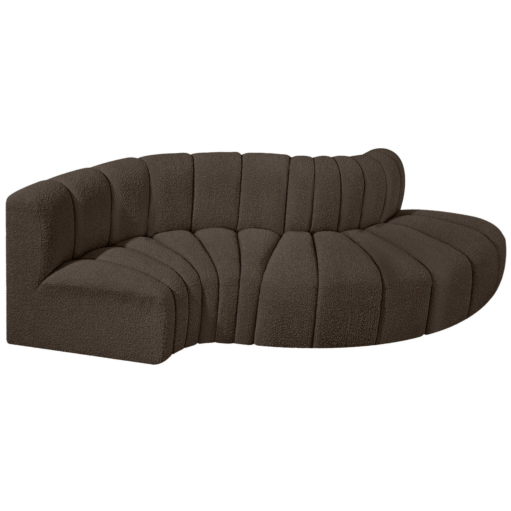 Meridian Arc 86" Brown Boucle Fabric Upholstered 3 pc Modular Sectional