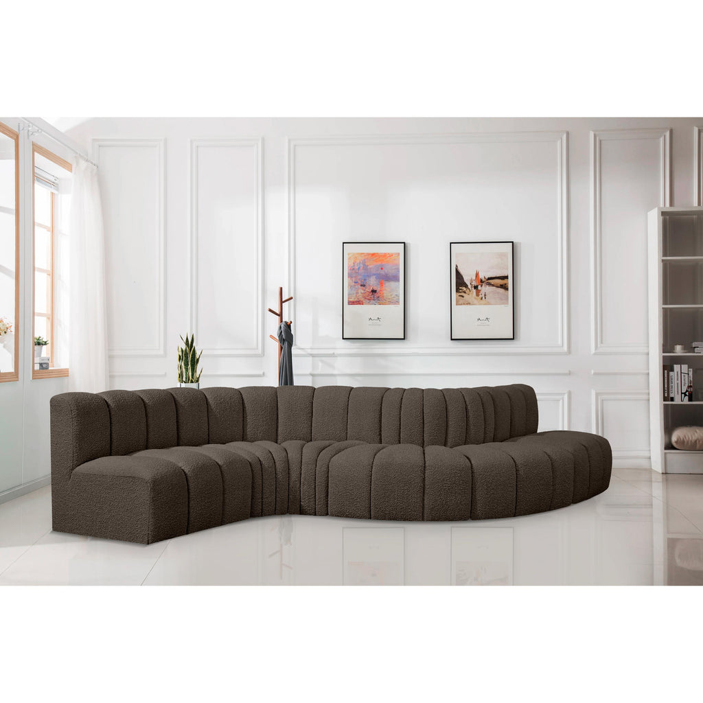 Meridian Arc 161" Brown Boucle Fabric Upholstered 10 pc Modular Sectional