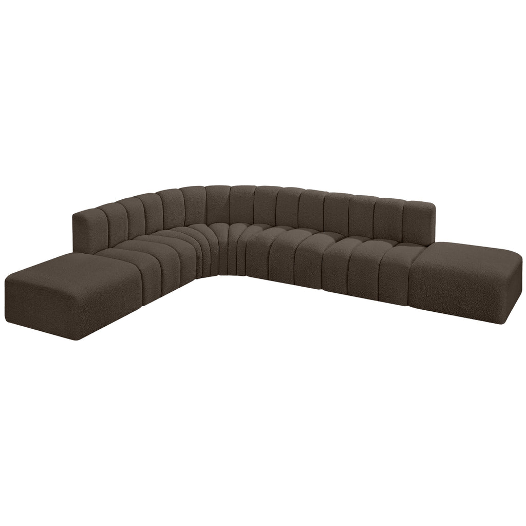 Meridian Arc 161" Brown Boucle Fabric Upholstered 10 pc Modular Sectional