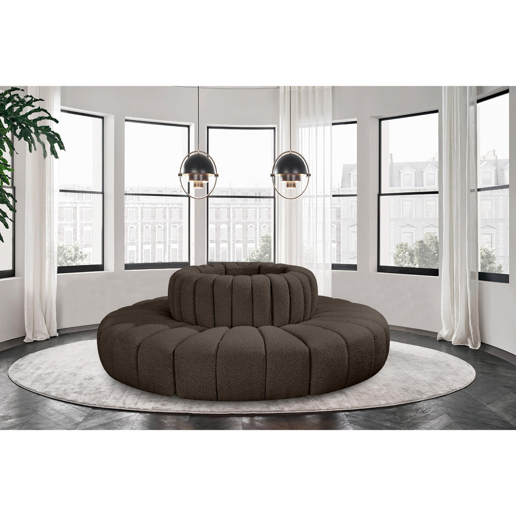 Meridian Arc Brown Boucle Fabric Upholstered Modular Curved Corner Chair