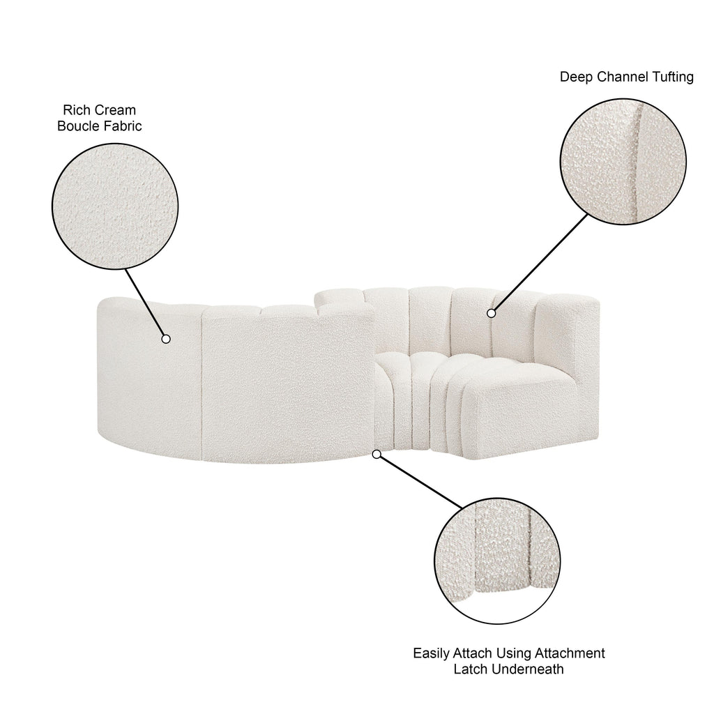 Meridian Arc 86" Cream Boucle Fabric Upholstered 3 pc Modular Sectional