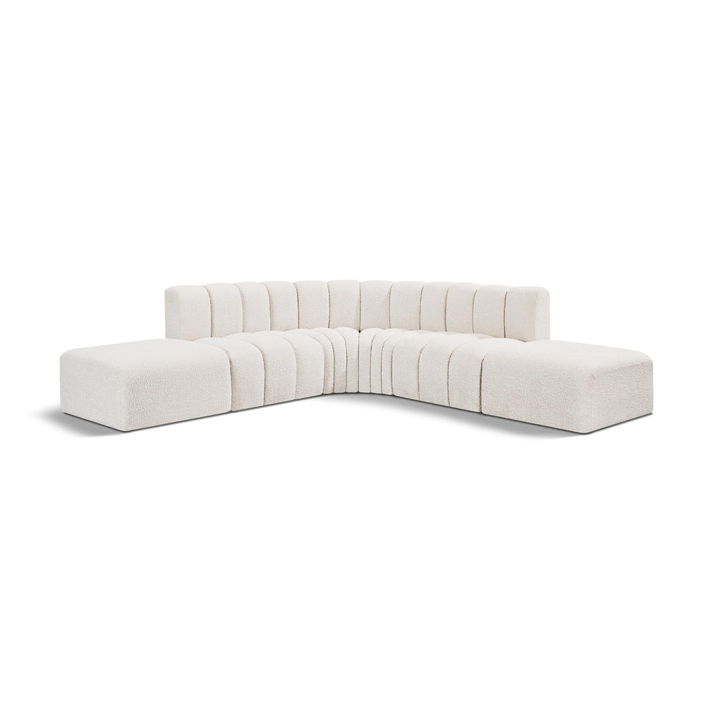 Meridian Arc Cream Boucle Fabric Upholstered Modular Ottoman