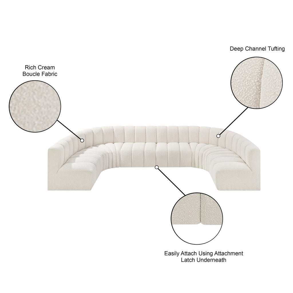 Meridian Arc 161" Cream Boucle Fabric Upholstered 10 pc Modular Sectional