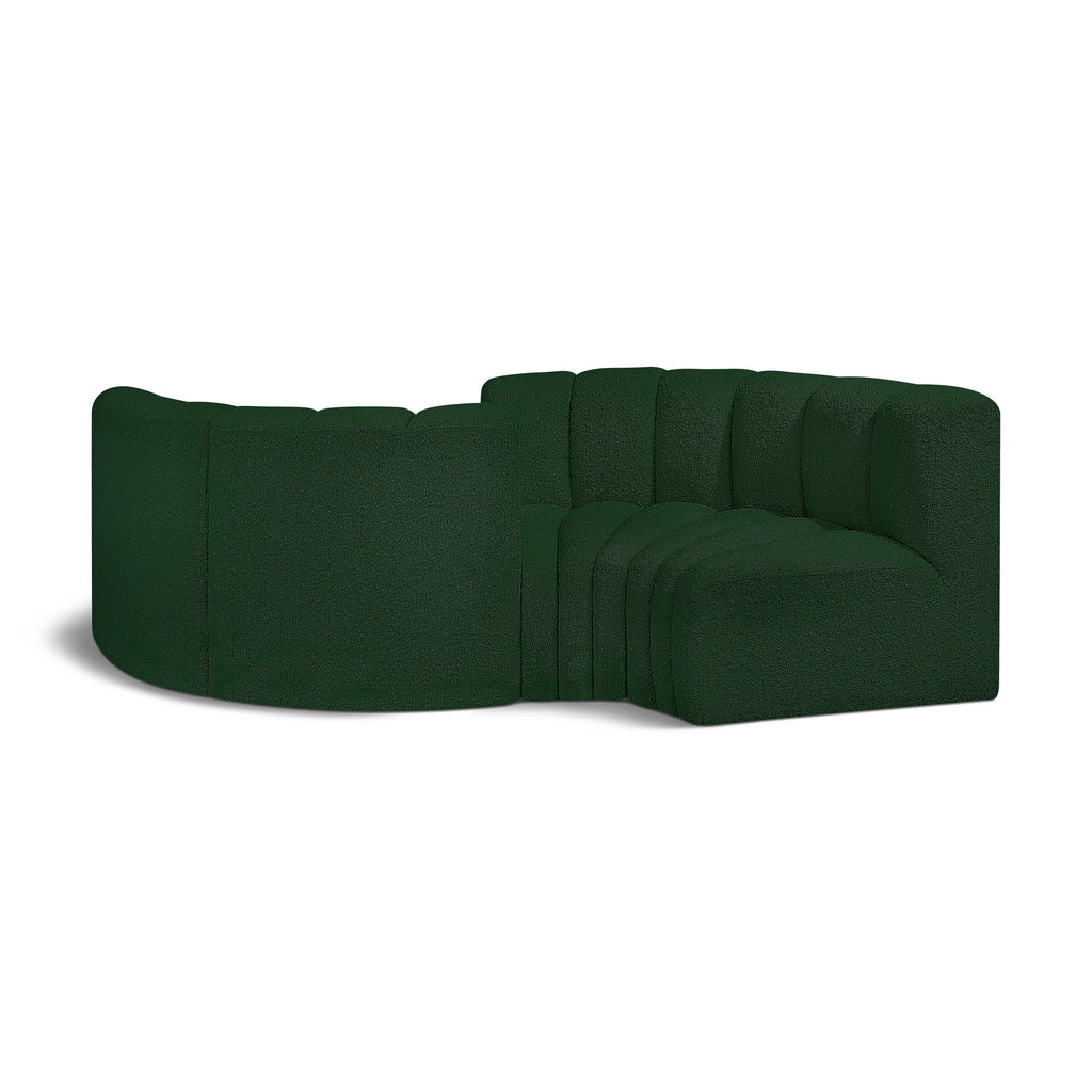 Meridian Arc 103" Green Boucle Fabric Upholstered 4 pc Modular Sectional