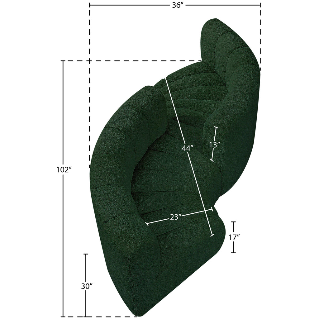 Meridian Arc Green Boucle Fabric Upholstered Modular Straight Chair