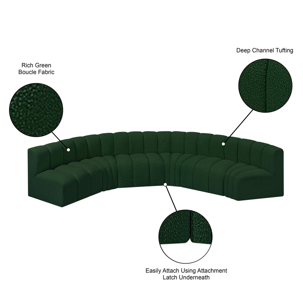 Meridian Arc 161" Green Boucle Fabric Upholstered 10 pc Modular Sectional