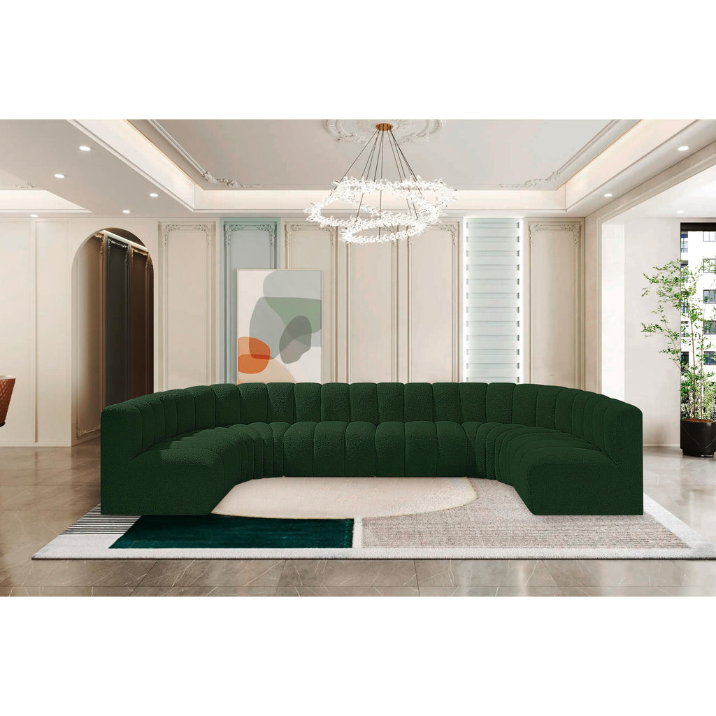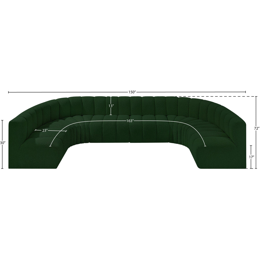 Meridian Arc 161" Green Boucle Fabric Upholstered 10 pc Modular Sectional