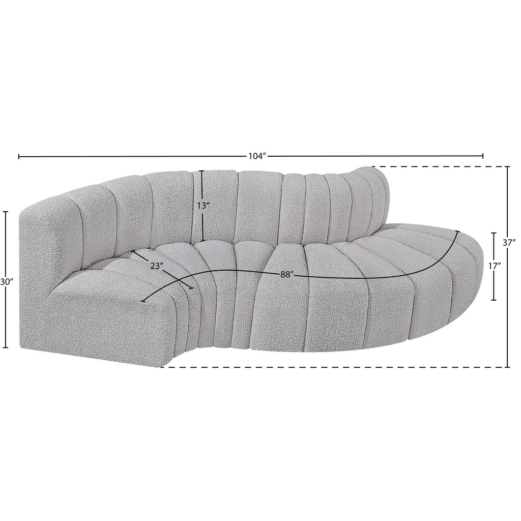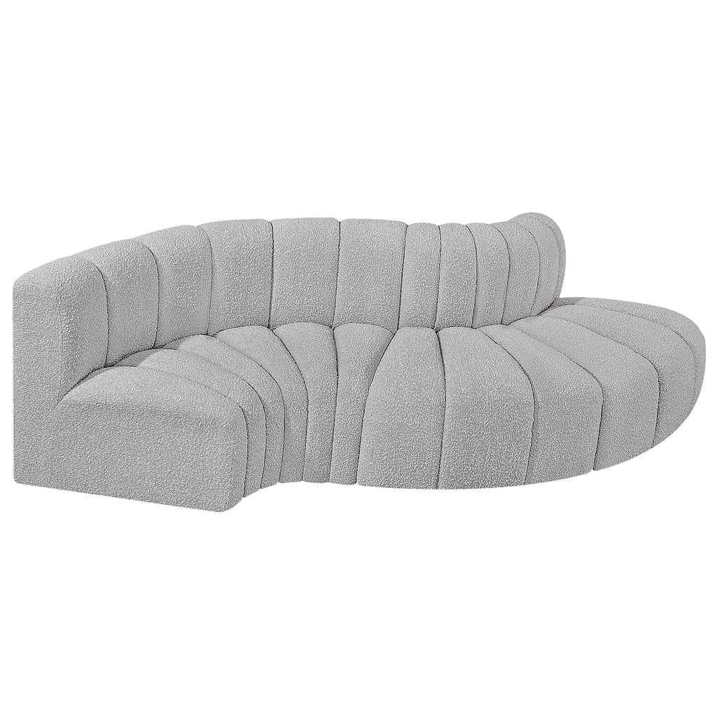 Meridian Arc 103" Grey Boucle Fabric Upholstered 4 pc Modular Sectional