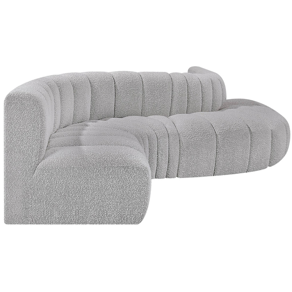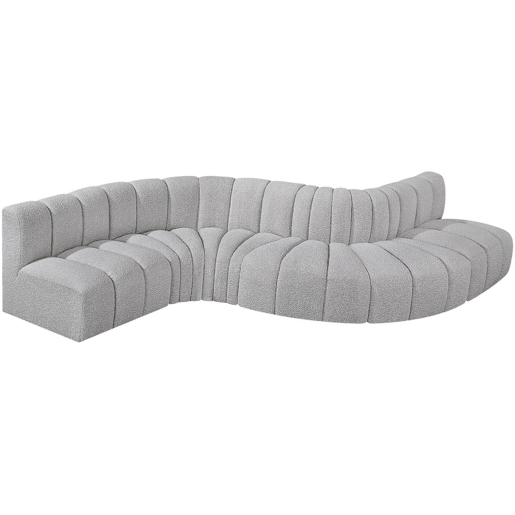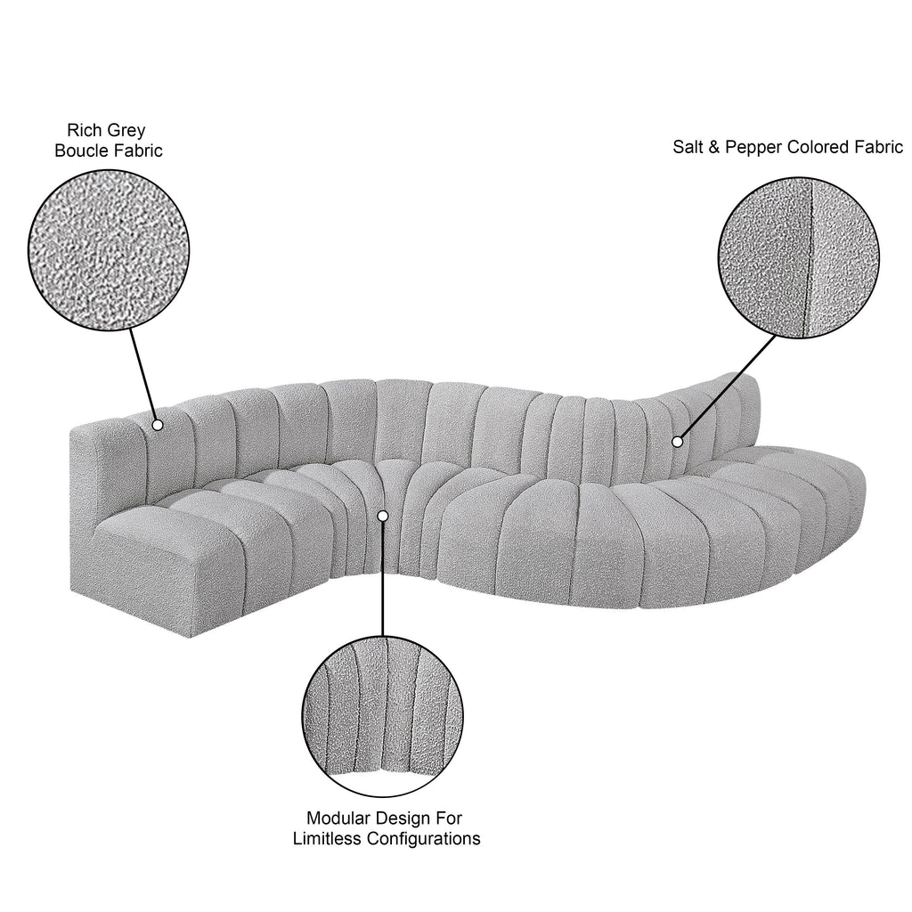 Meridian Arc 161" Grey Boucle Fabric Upholstered 10 pc Modular Sectional