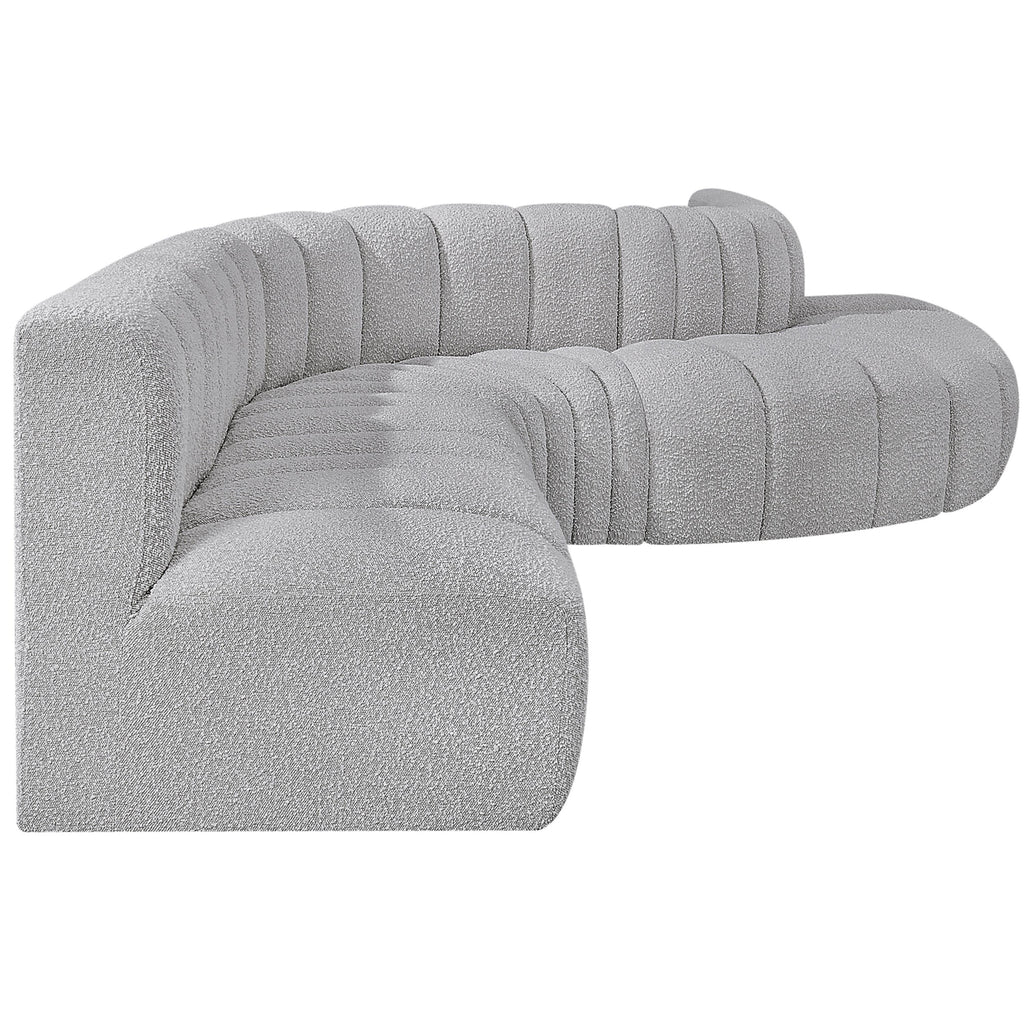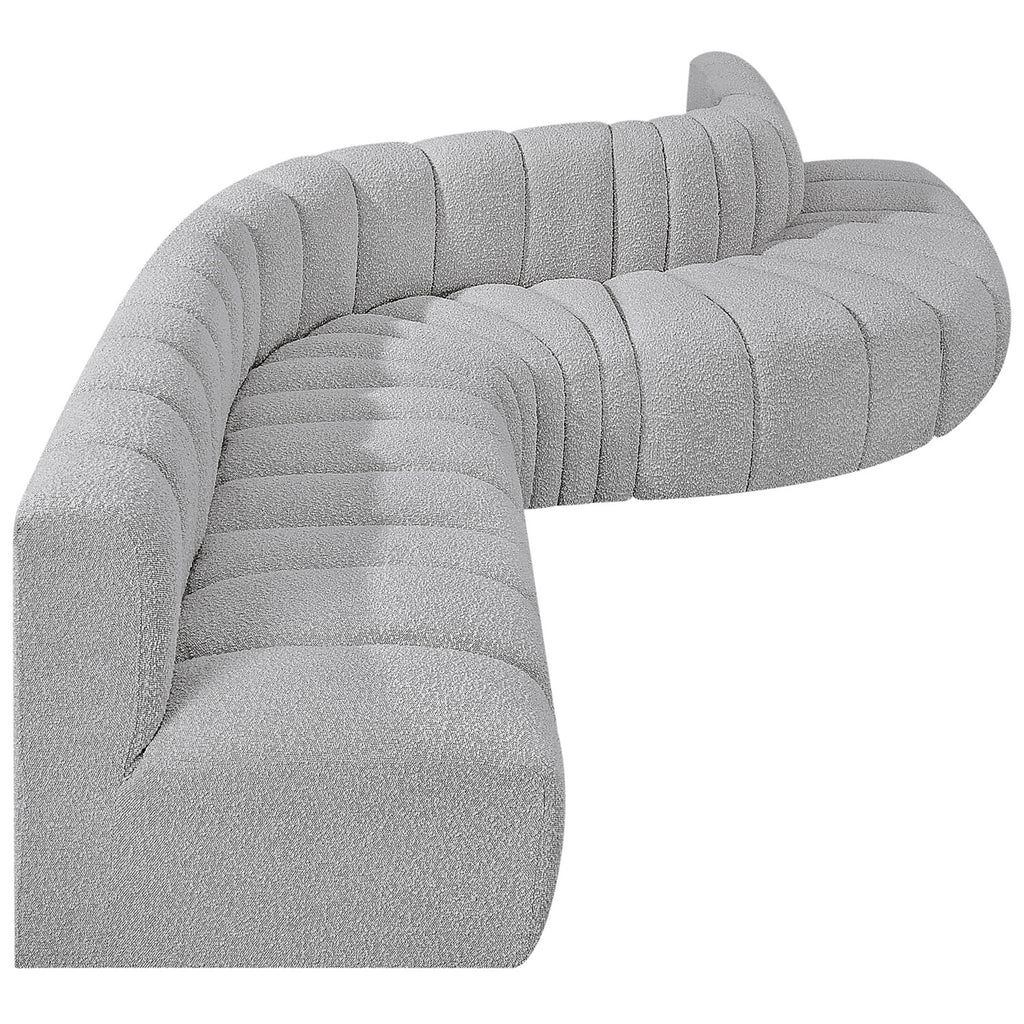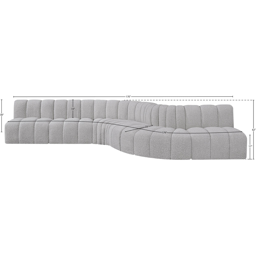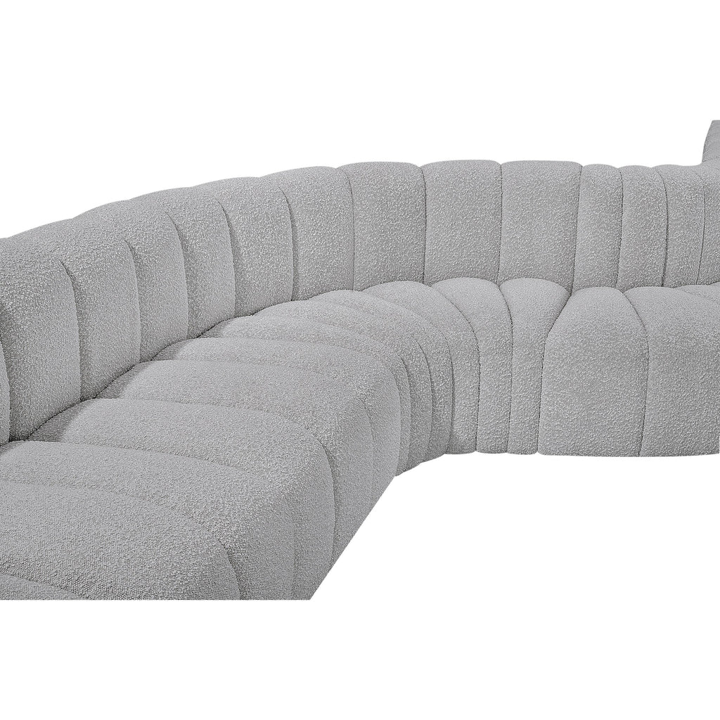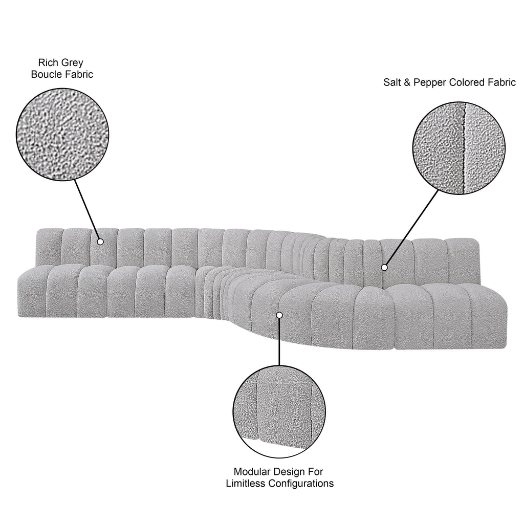 Meridian Arc 161" Grey Boucle Fabric Upholstered 10 pc Modular Sectional