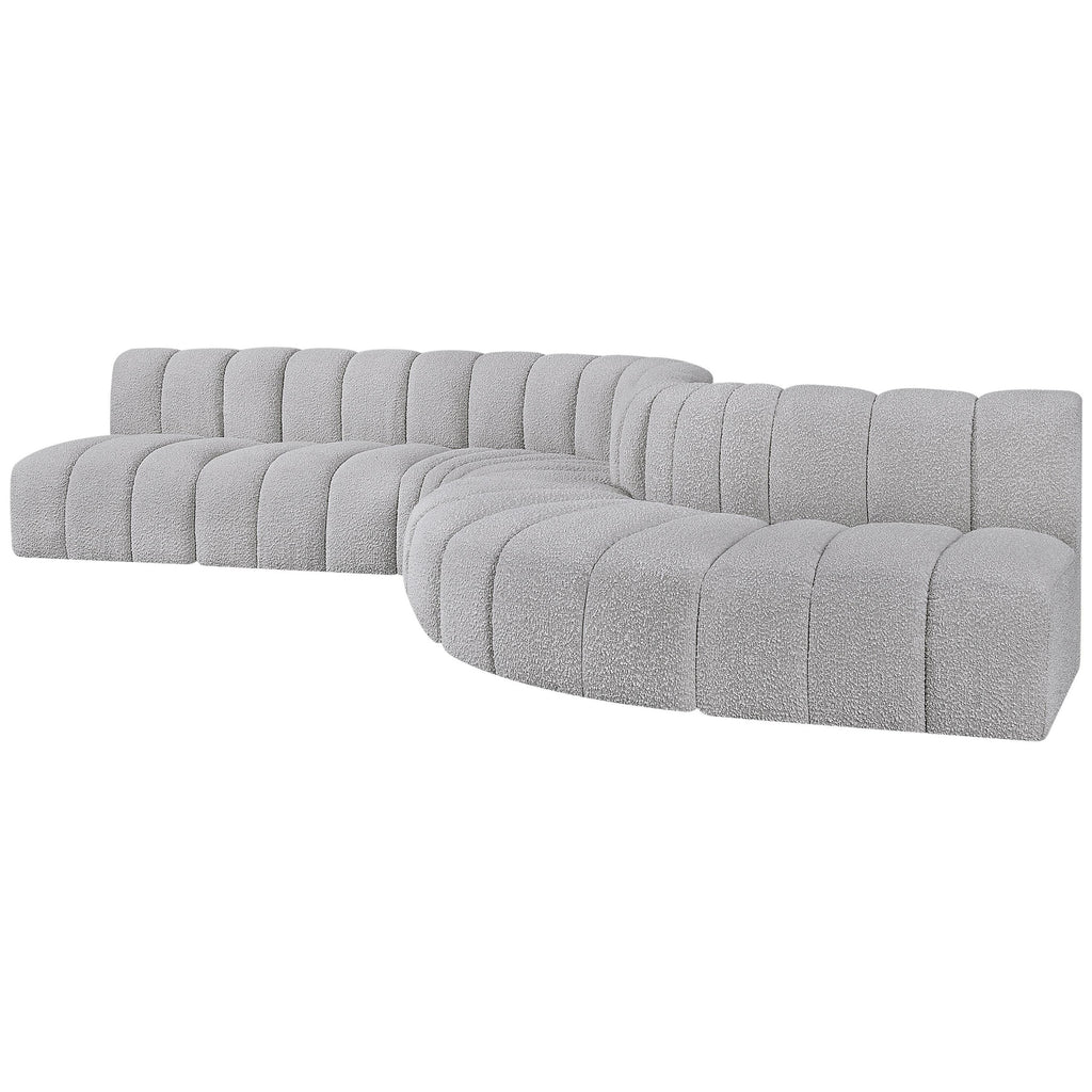 Meridian Arc 108" Grey Boucle Fabric Upholstered 4 pc Modular Sectional