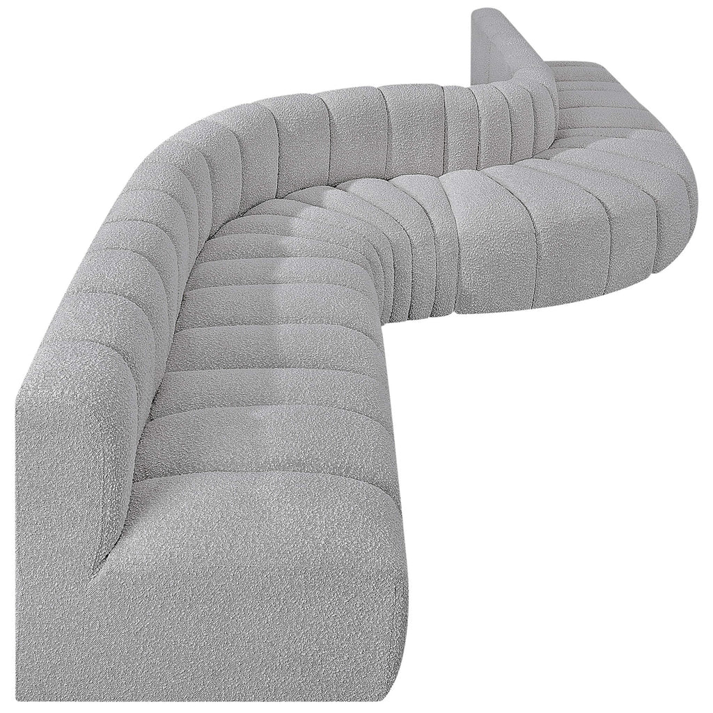 Meridian Arc 161" Grey Boucle Fabric Upholstered 10 pc Modular Sectional
