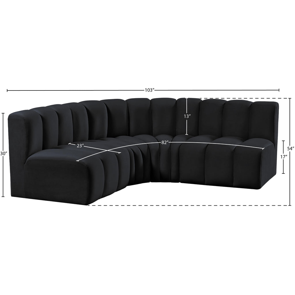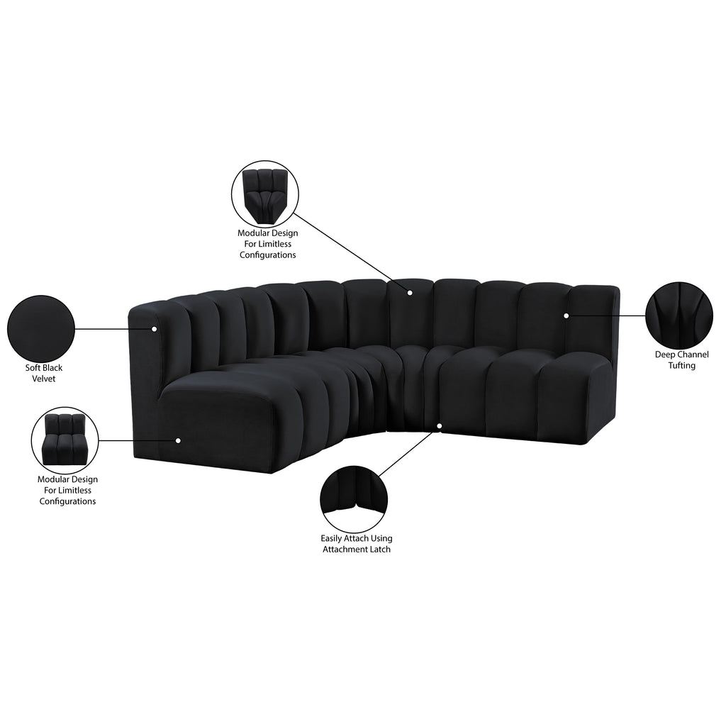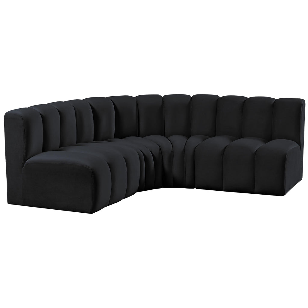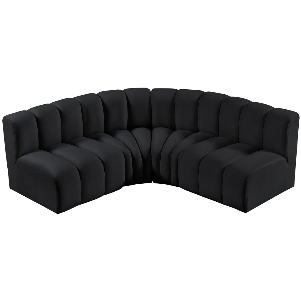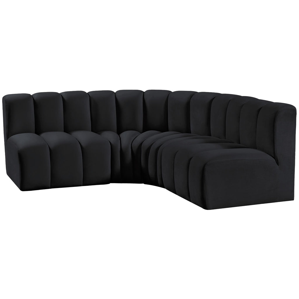 Meridian Arc Black Velvet Upholstered Modular Reverse Corner Chair