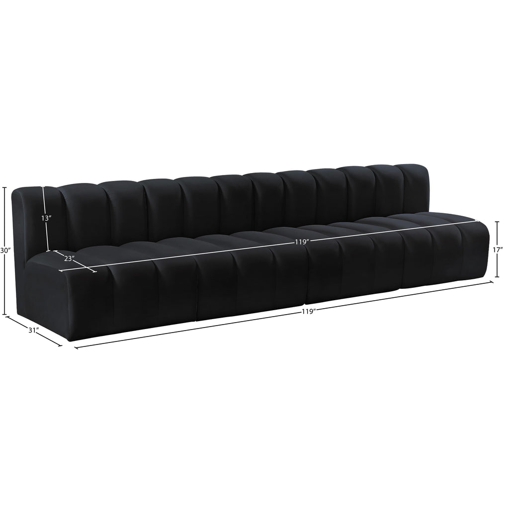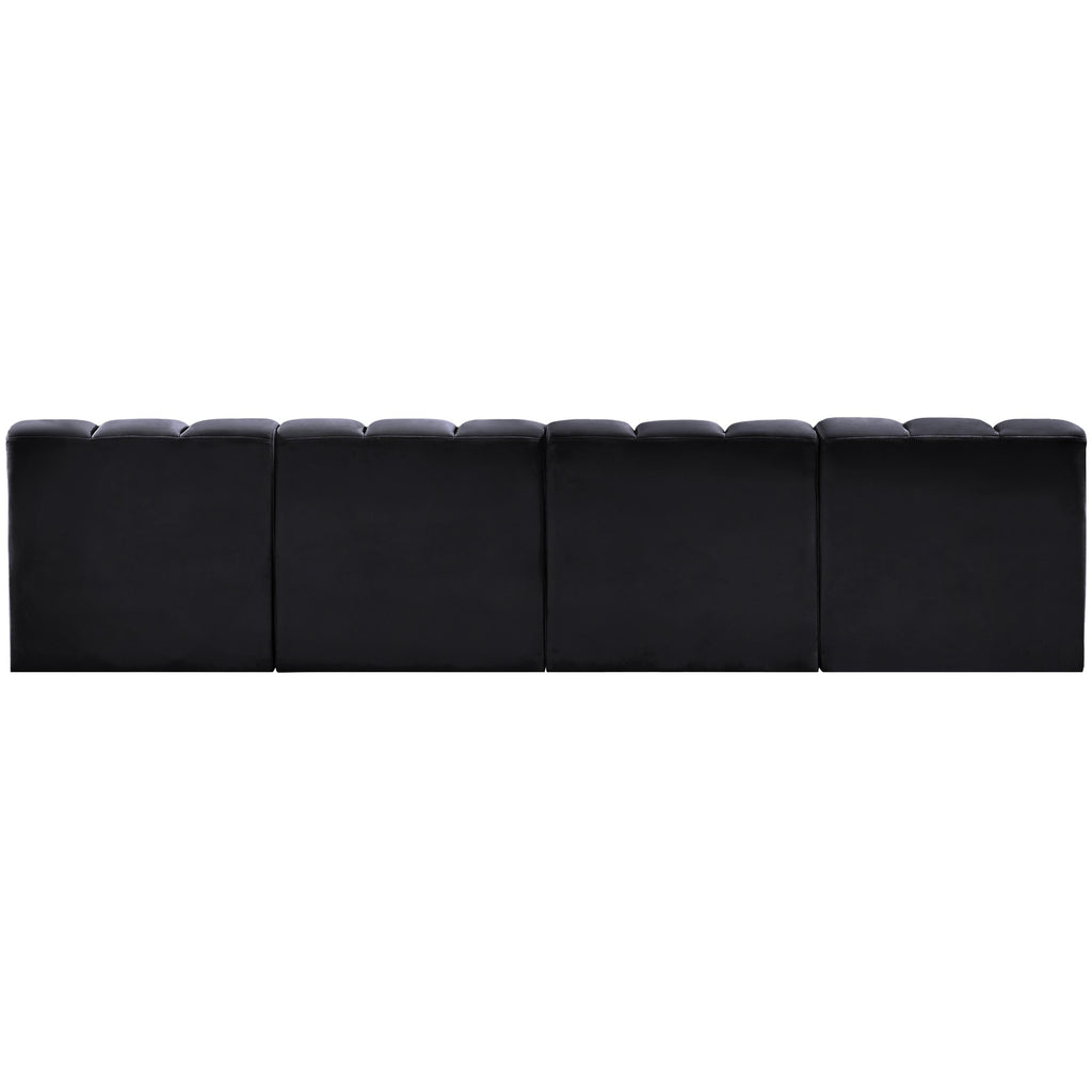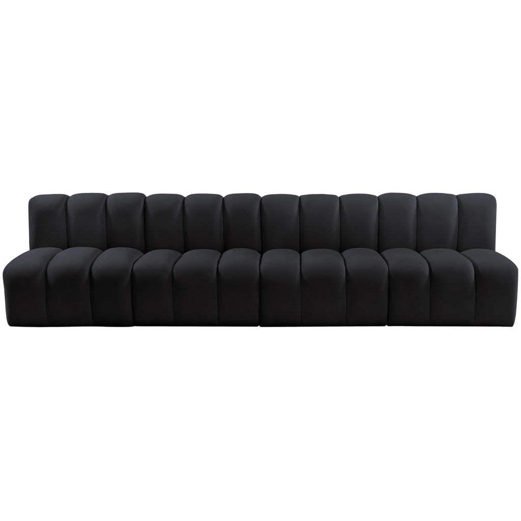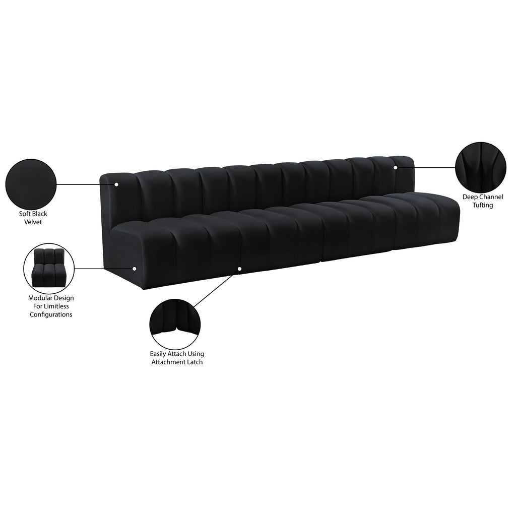 Meridian Arc Black Velvet Upholstered Modular Straight Chair