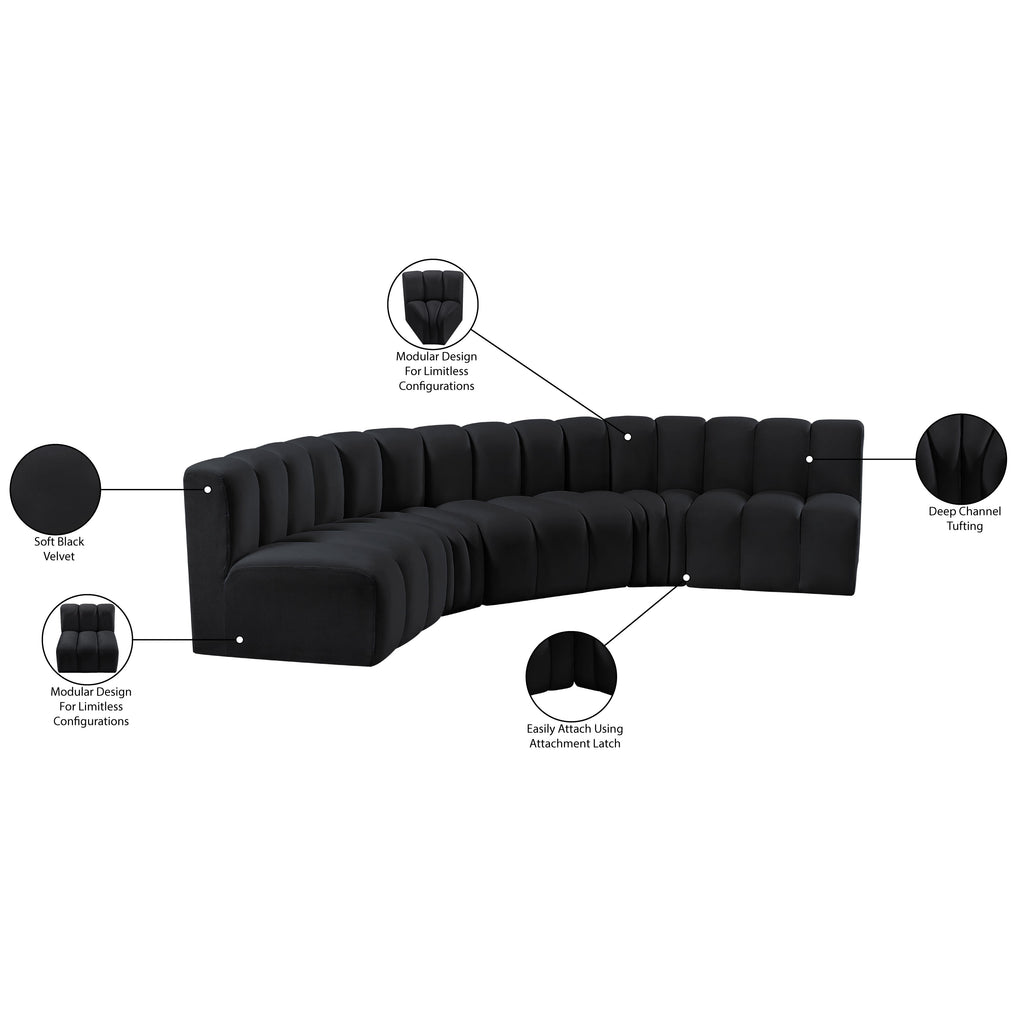 Meridian Arc Black Velvet Upholstered Modular Reverse Corner Chair