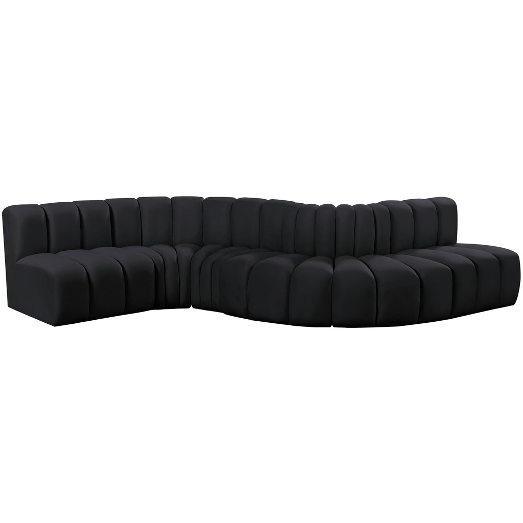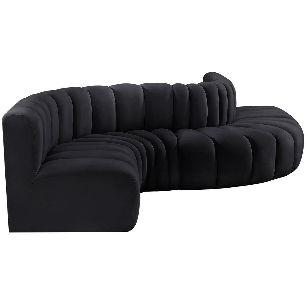 Meridian Arc Black Velvet Upholstered Modular Reverse Corner Chair