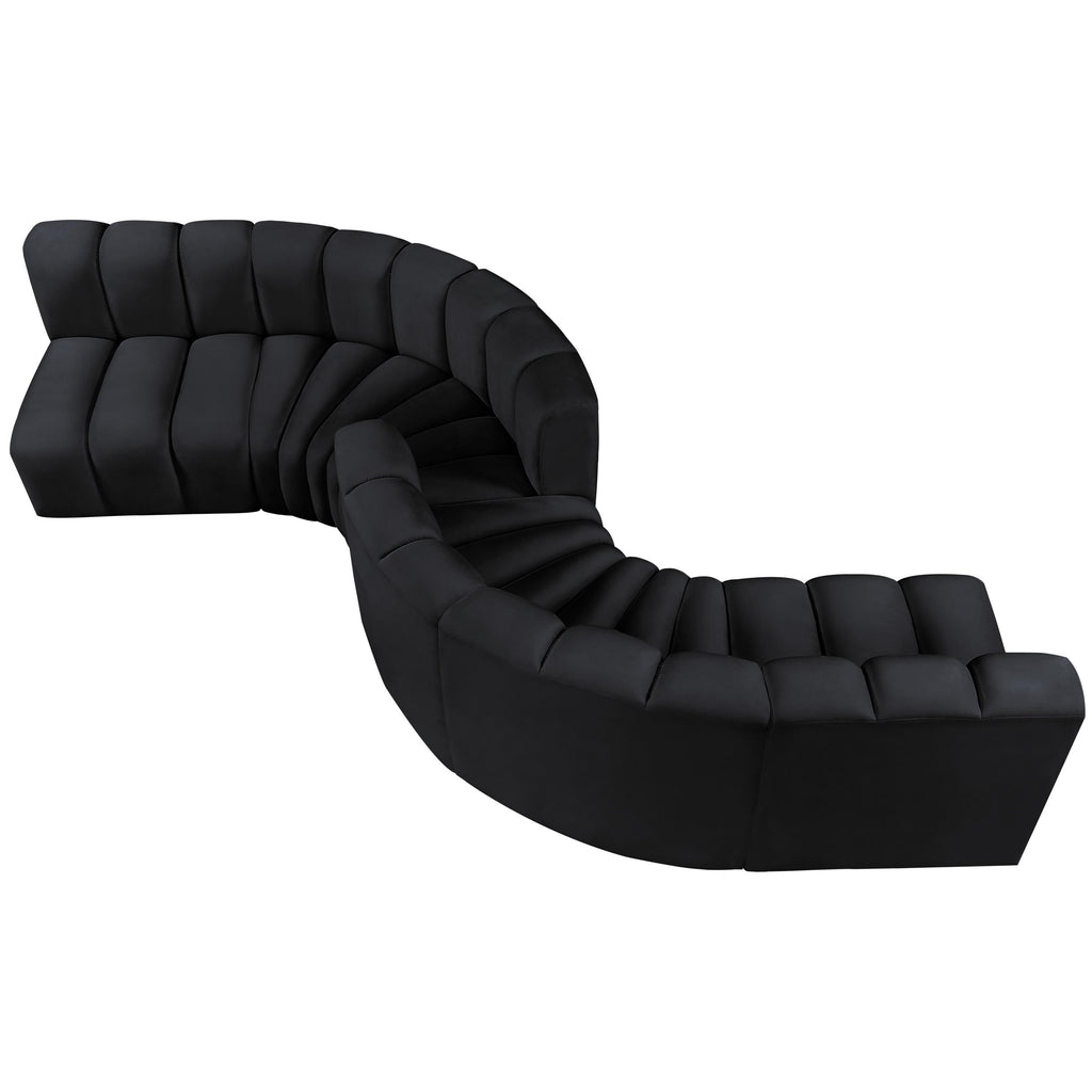 Meridian Arc Black Velvet Upholstered Modular Reverse Corner Chair