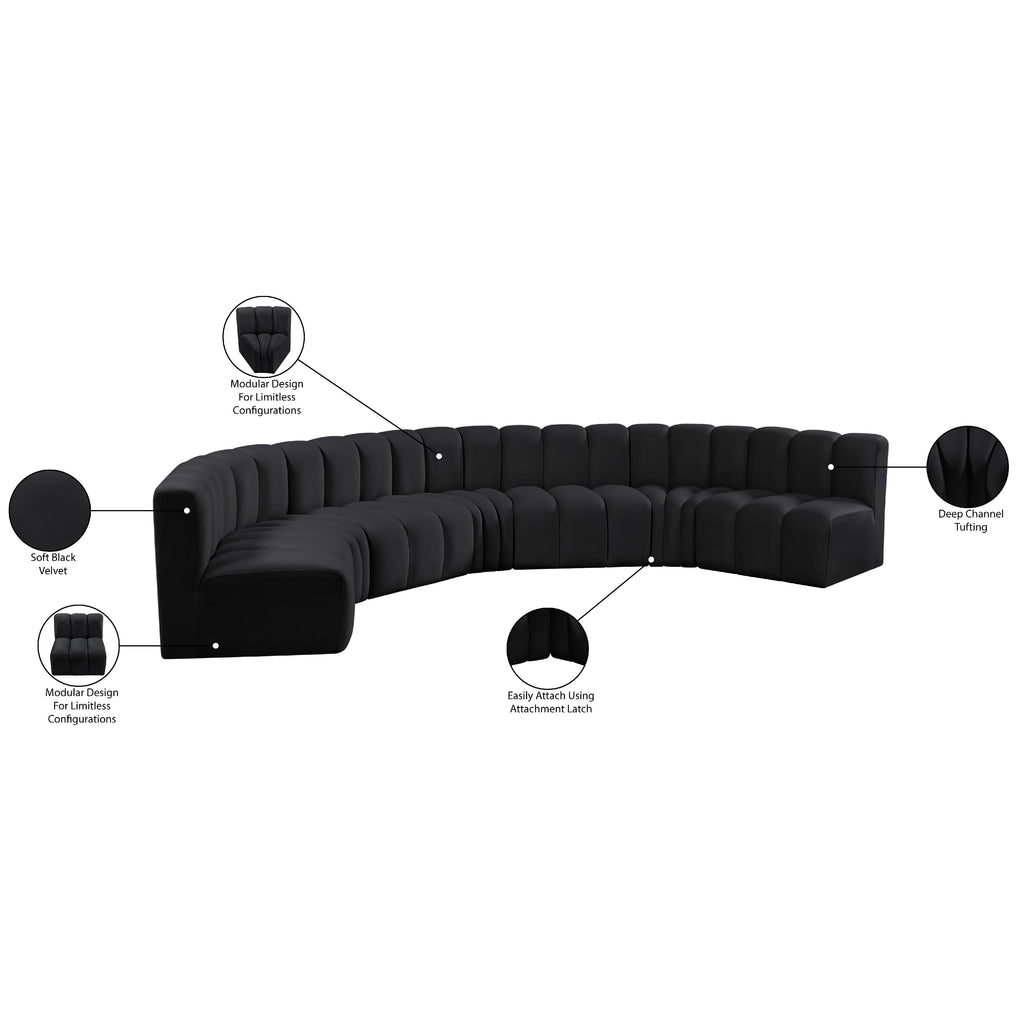 Meridian Arc Black Velvet Upholstered Modular Straight Chair
