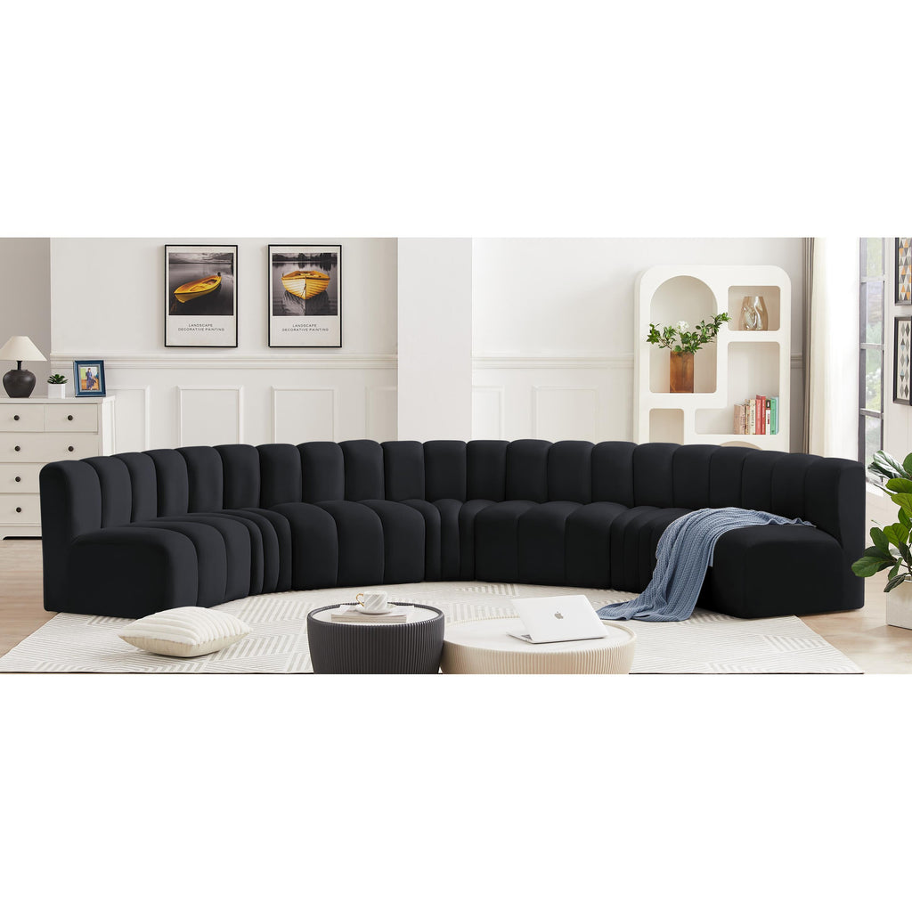 Meridian Arc 161" Black Boucle Fabric Upholstered 10 pc Modular Sectional