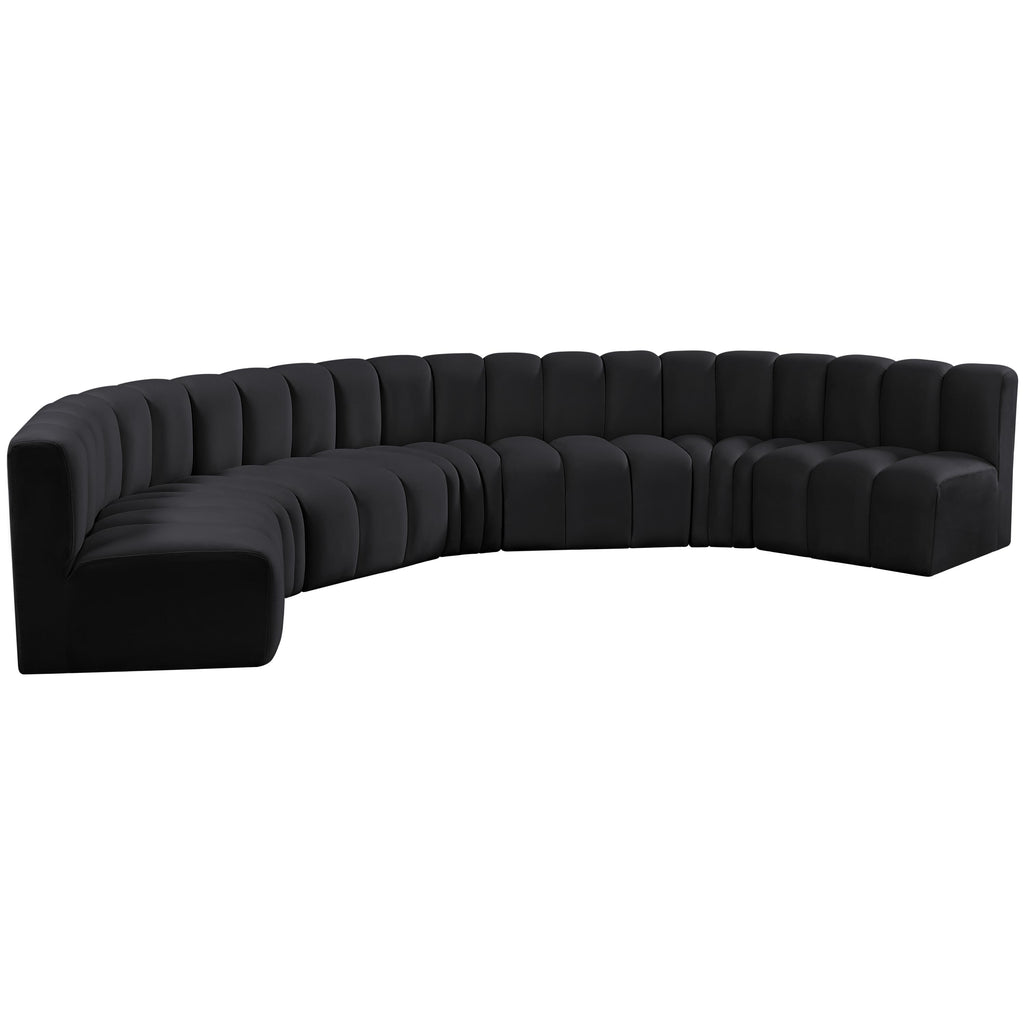 Meridian Arc Black Velvet Upholstered Modular Reverse Corner Chair
