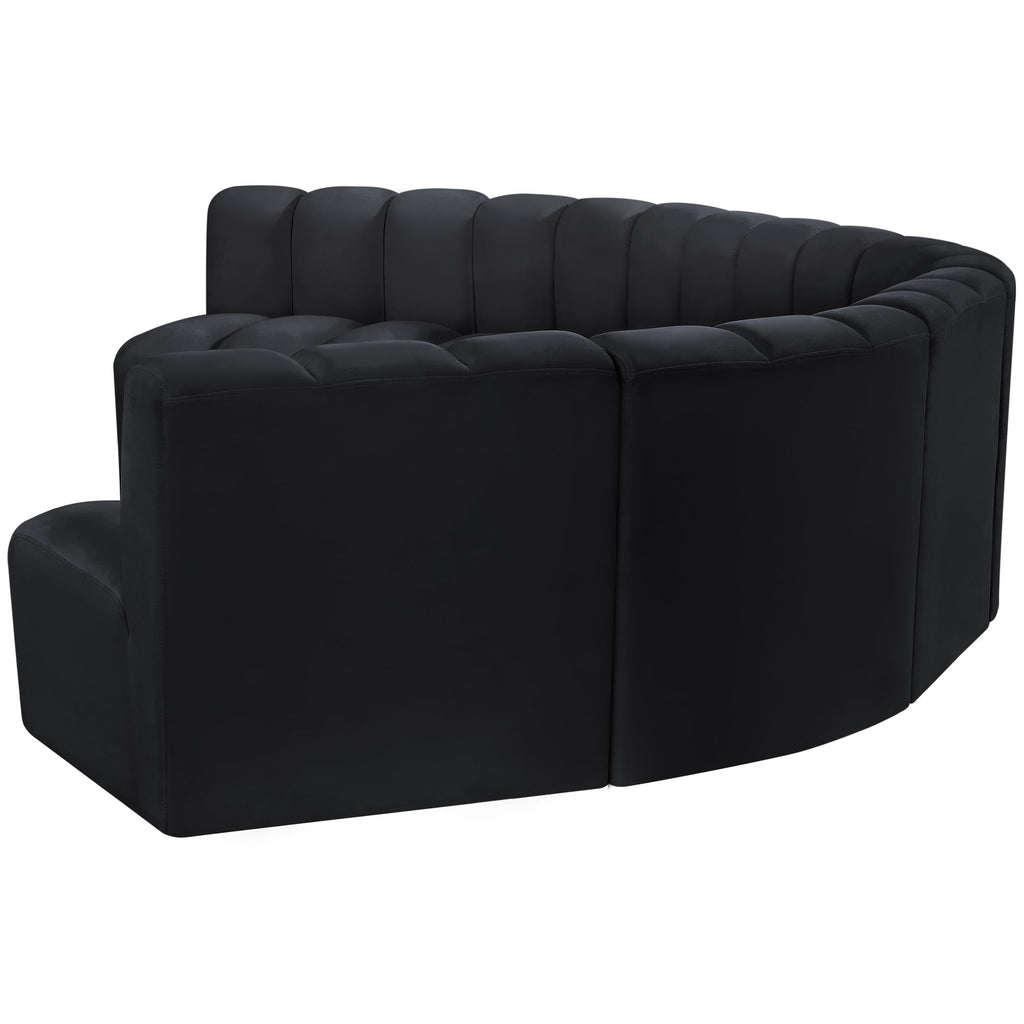 Meridian Arc Black Velvet Upholstered Modular Curved Corner Chair