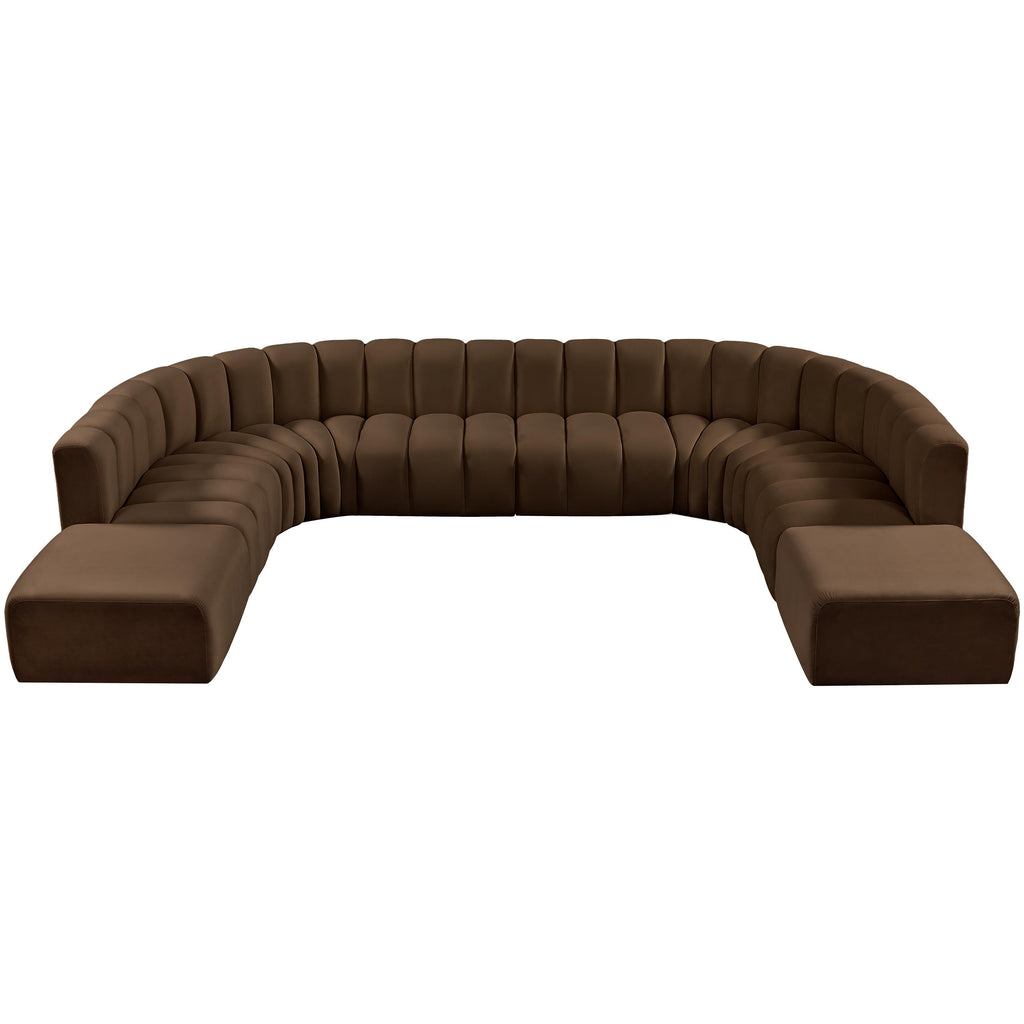 Meridian Arc Brown Velvet Upholstered Modular Ottoman