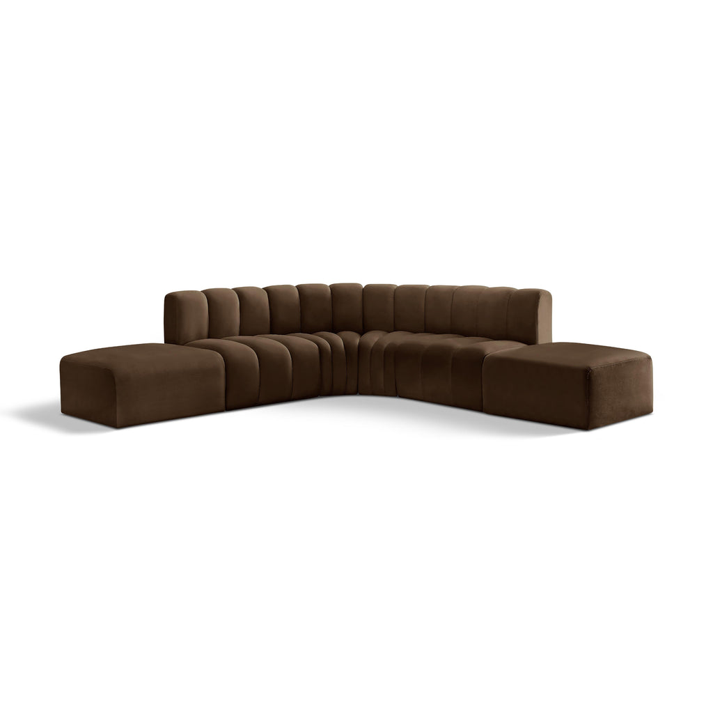 Meridian Arc Brown Velvet Upholstered Modular Reverse Corner Chair