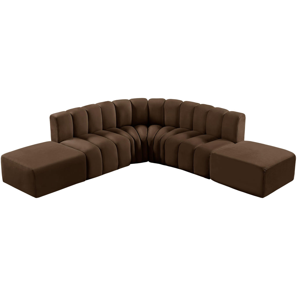 Meridian Arc Brown Velvet Upholstered Modular Ottoman