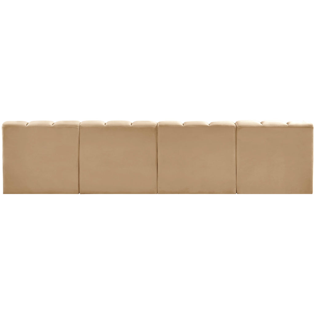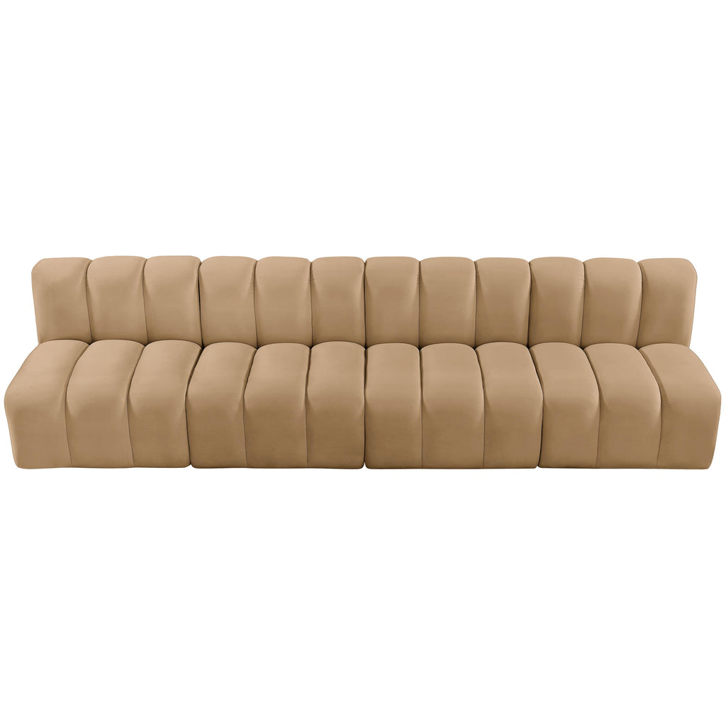 Meridian Arc 108" Camel Velvet Upholstered 4 pc Modular Sectional