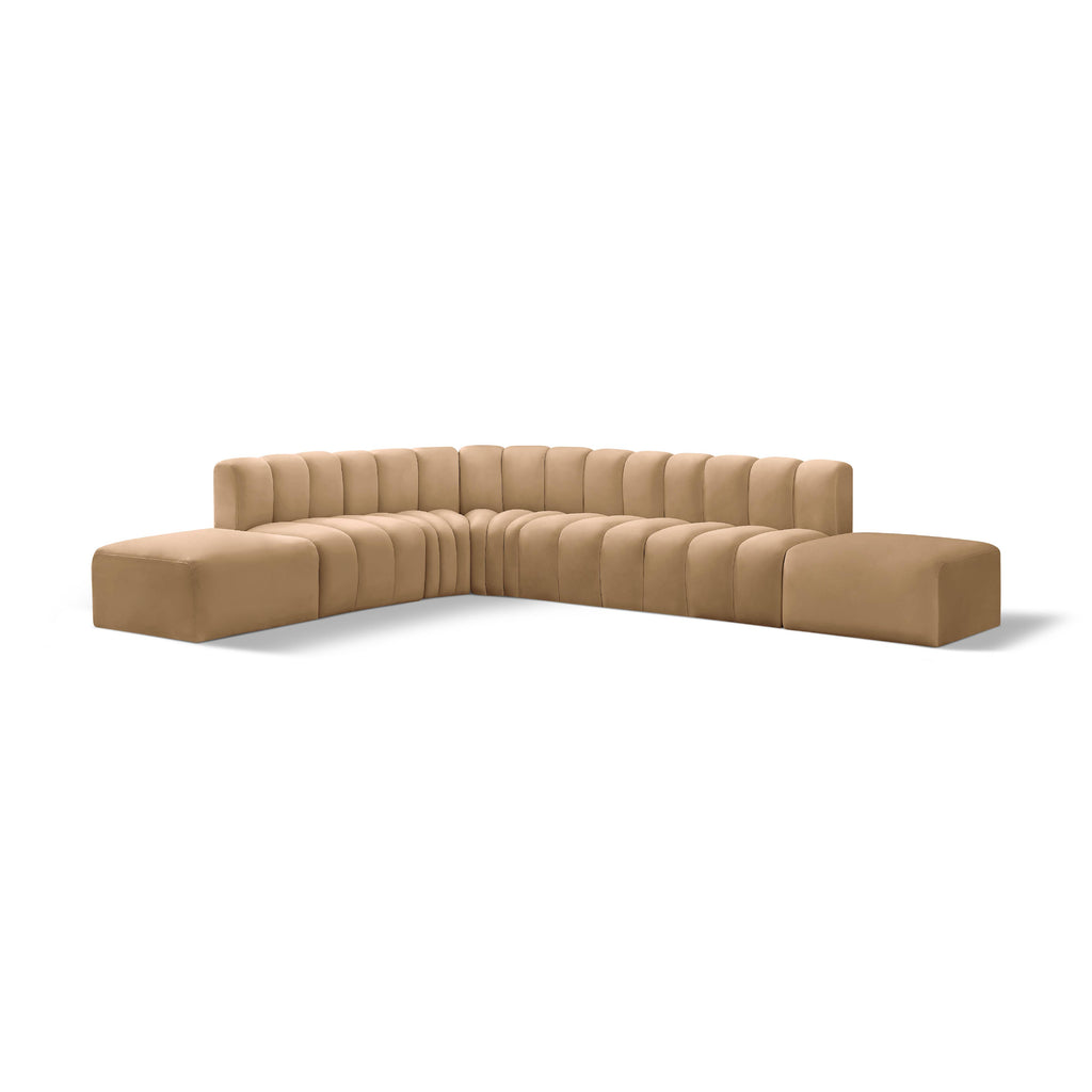 Meridian Arc 161" Camel Velvet Upholstered 10 pc Modular Sectional