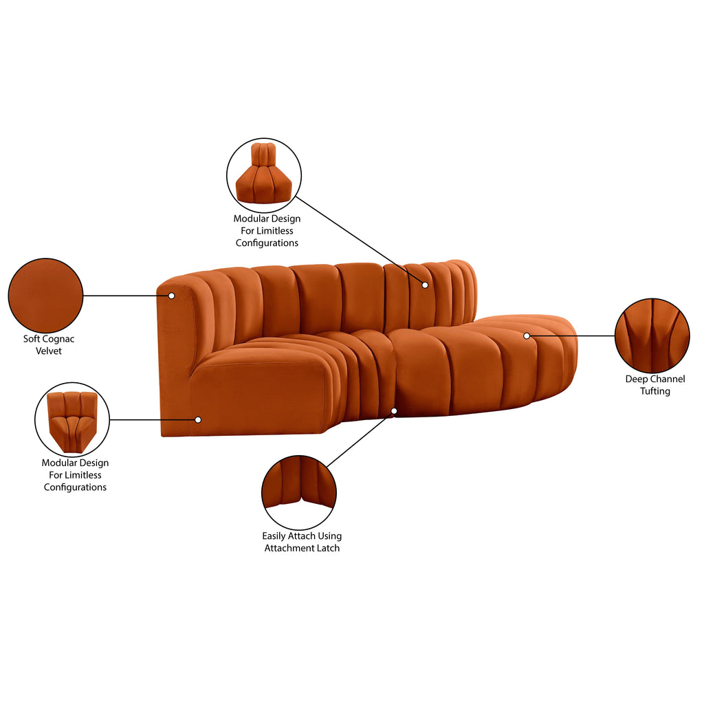 Meridian Arc Cognac Velvet Upholstered Modular Reverse Corner Chair