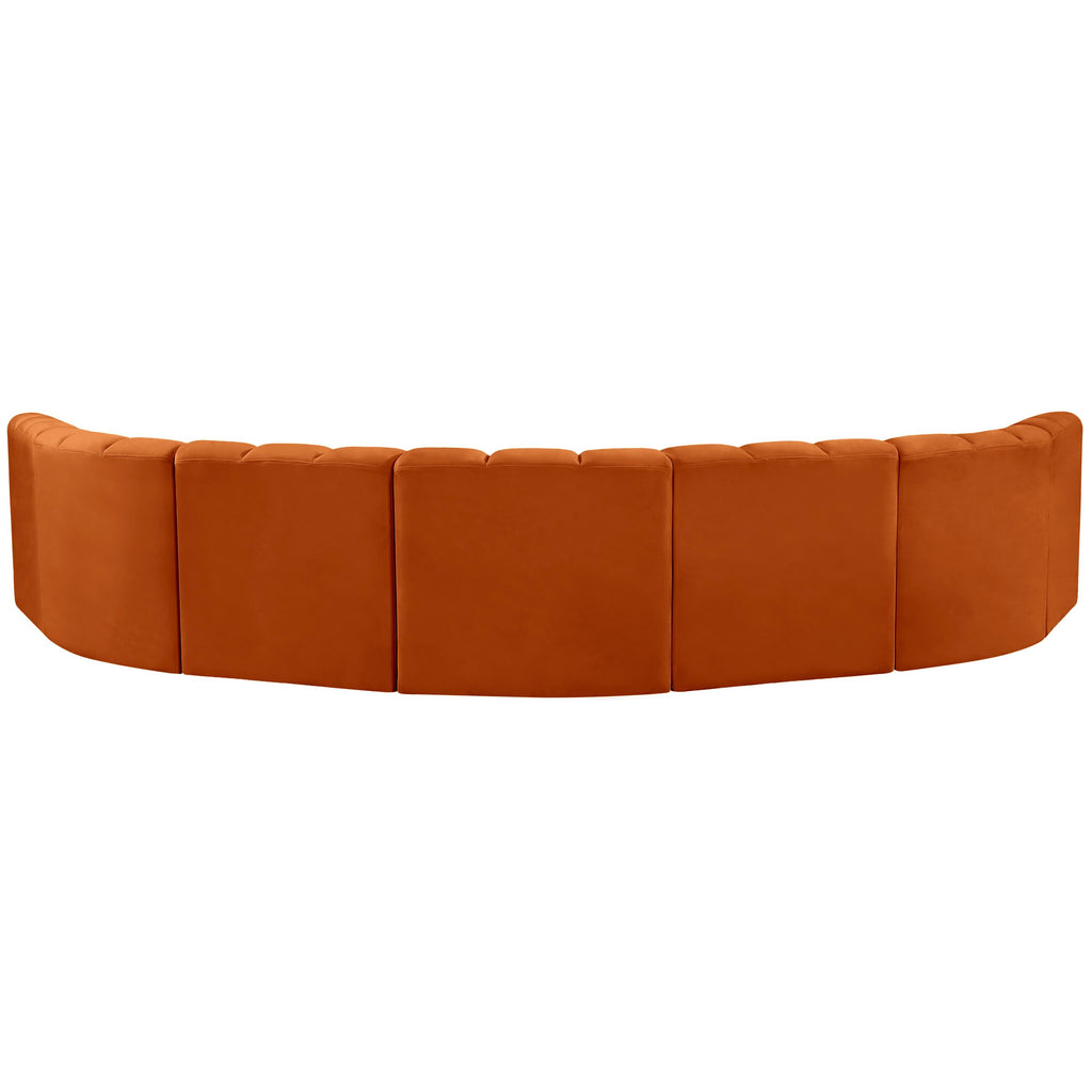 Meridian Arc Cognac Velvet Upholstered Modular Reverse Corner Chair