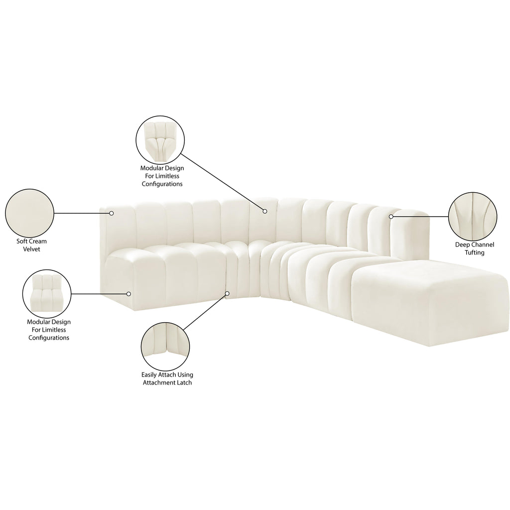 Meridian Arc Cream Velvet Upholstered Modular Reverse Corner Chair