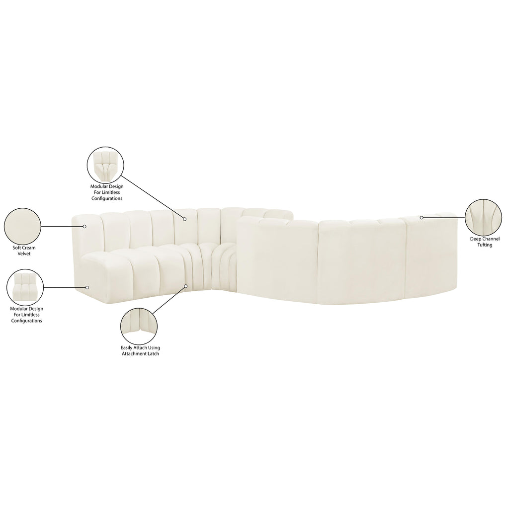 Meridian Arc Cream Velvet Upholstered Modular Reverse Corner Chair