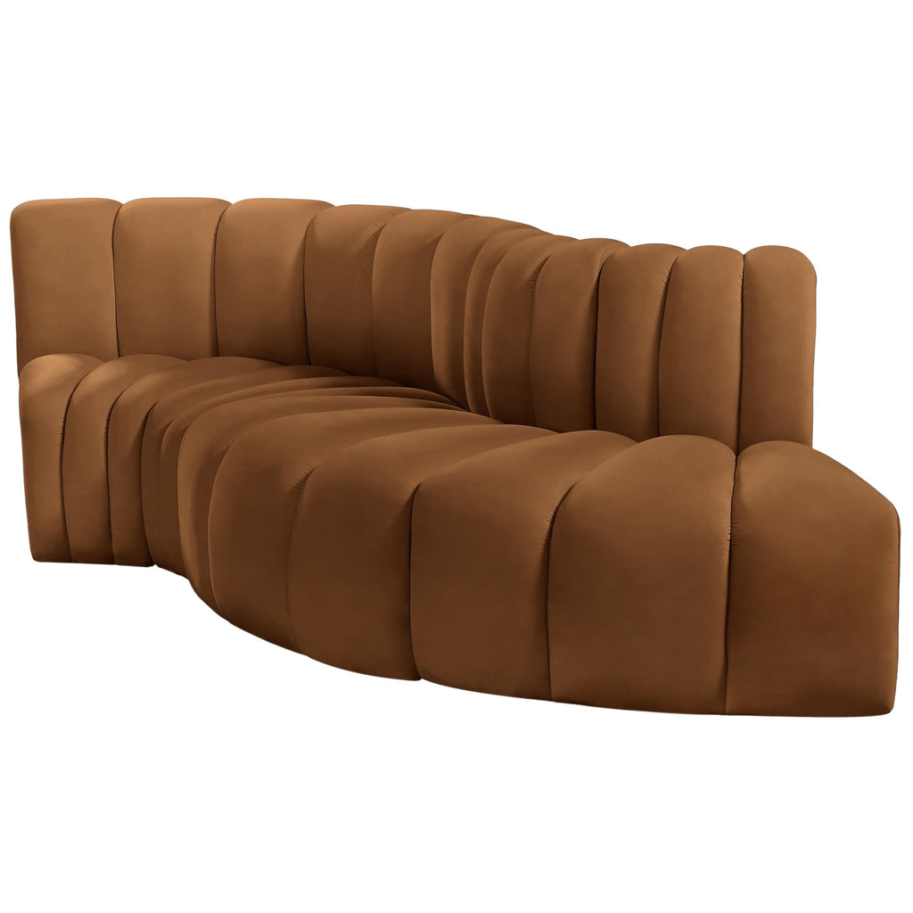 Meridian Arc 108" Saddle Velvet Upholstered 4 pc Modular Sectional