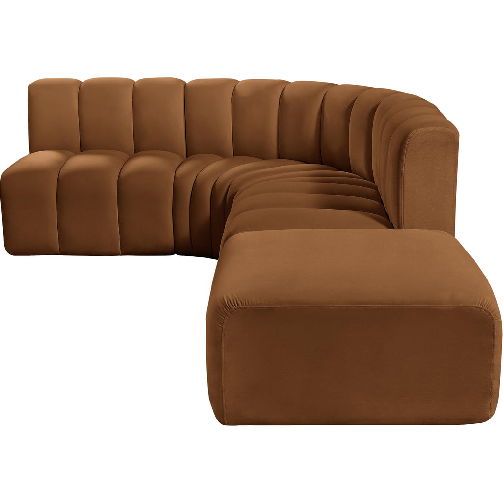Meridian Arc 161" Saddle Velvet Upholstered 10 pc Modular Sectional
