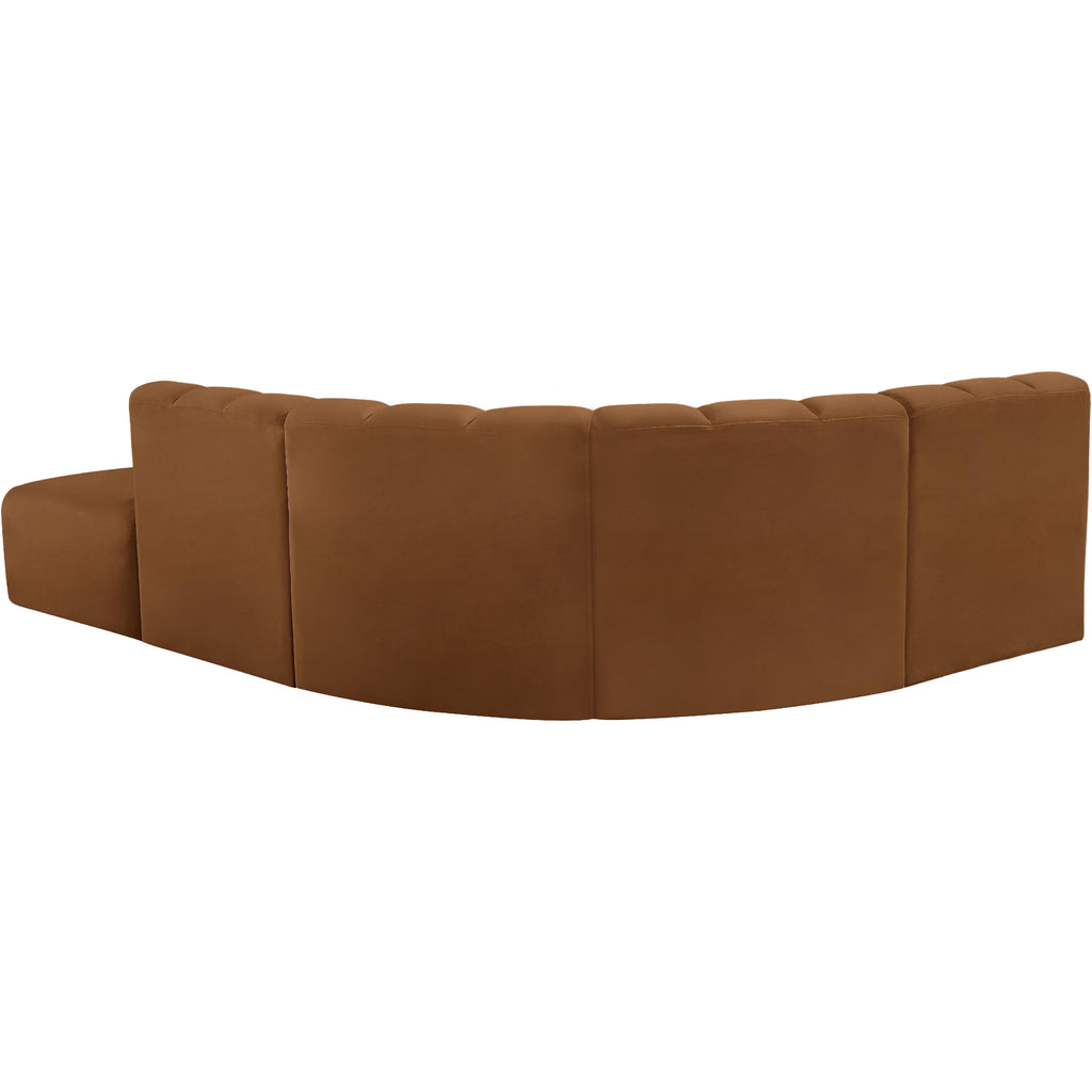 Meridian Arc 108" Saddle Velvet Upholstered 4 pc Modular Sectional