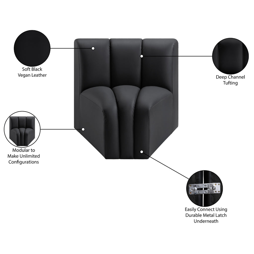 Meridian Arc Black Vegan Leather Upholstered Modular Ottoman