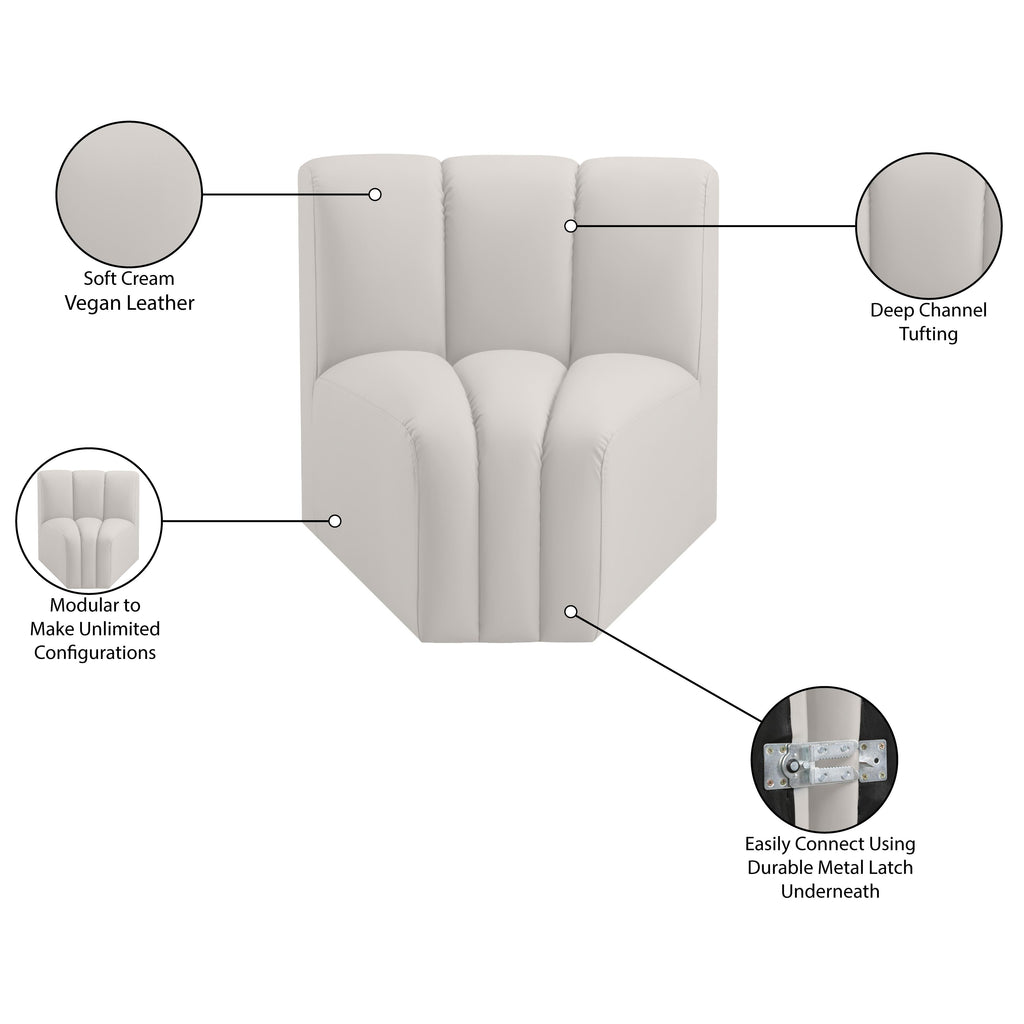 Meridian Arc Cream Vegan Leather Upholstered Modular Ottoman