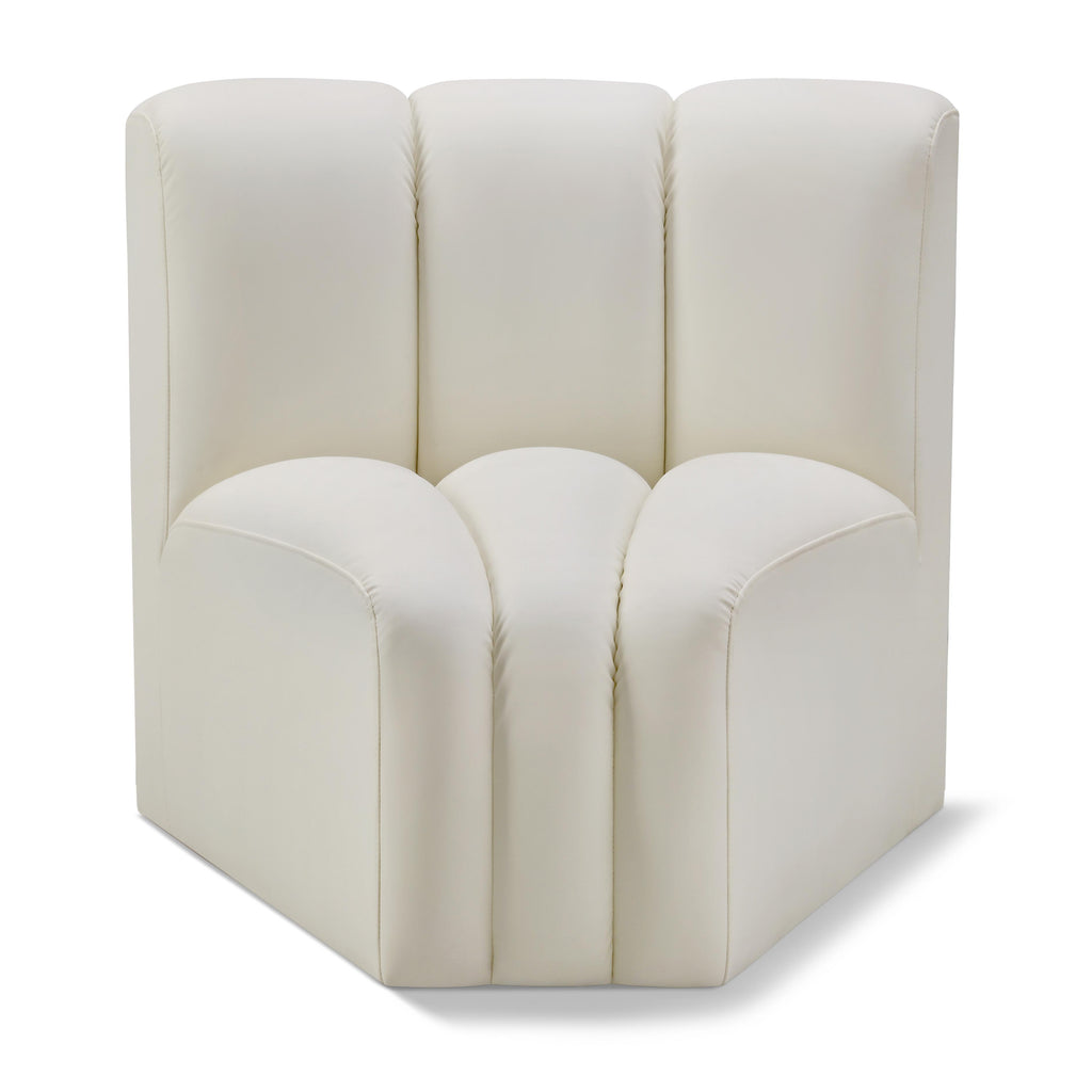 Meridian Arc Cream Velvet Upholstered Modular Reverse Corner Chair