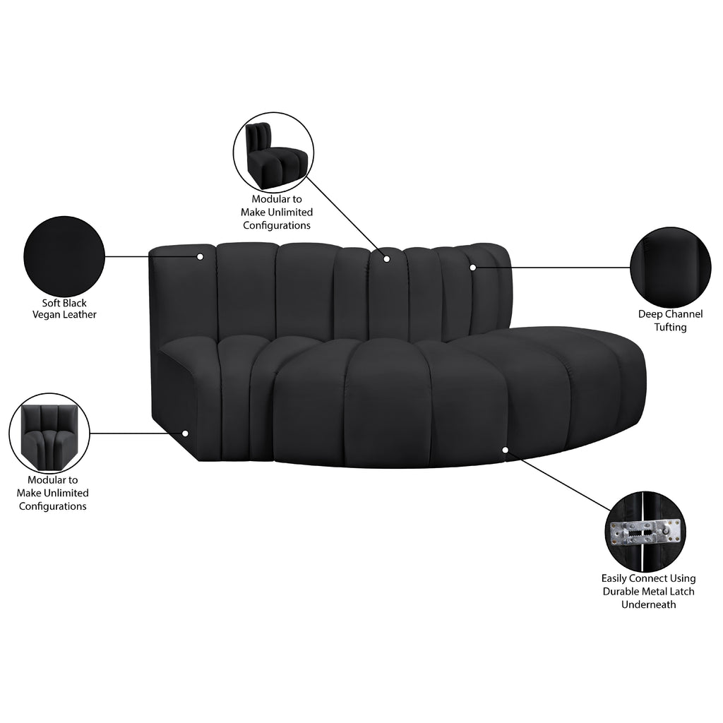 Meridian Arc Black Vegan Leather Upholstered Modular Ottoman