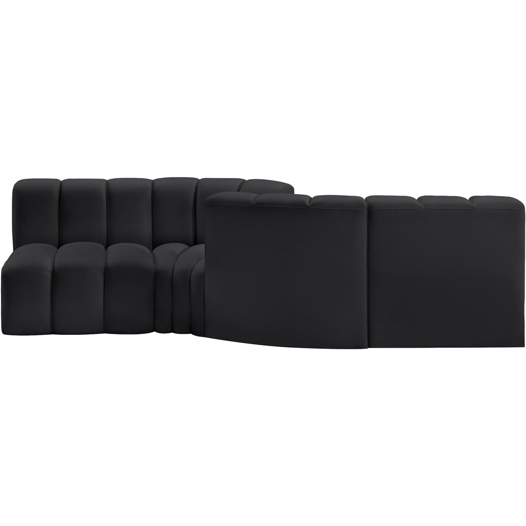 Meridian Arc Black Velvet Upholstered Modular Reverse Corner Chair