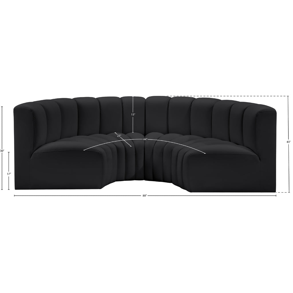 Meridian Arc Black Velvet Upholstered Modular Reverse Corner Chair