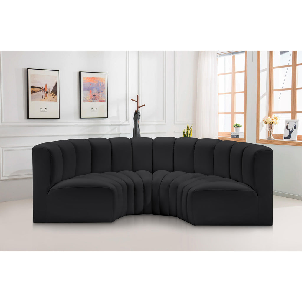Meridian Arc 86" Black Boucle Fabric Upholstered 3 pc Modular Sectional