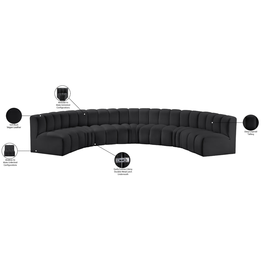 Meridian Arc Black Vegan Leather Upholstered Modular Ottoman