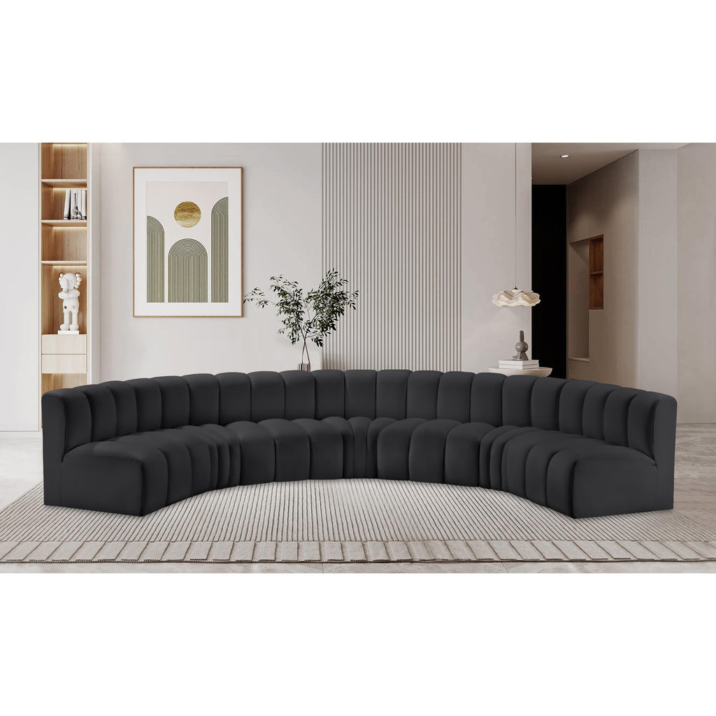 Meridian Arc 161" Black Boucle Fabric Upholstered 10 pc Modular Sectional